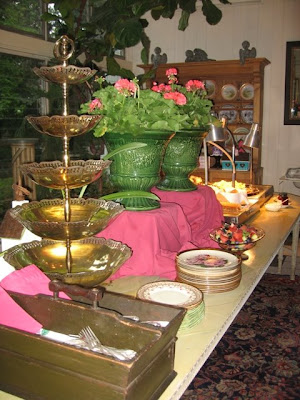 I would never think of using cherry tomatoes in a centerpiece, but it worked. They also scattered them throughout the boxwood that was on top of the table.
