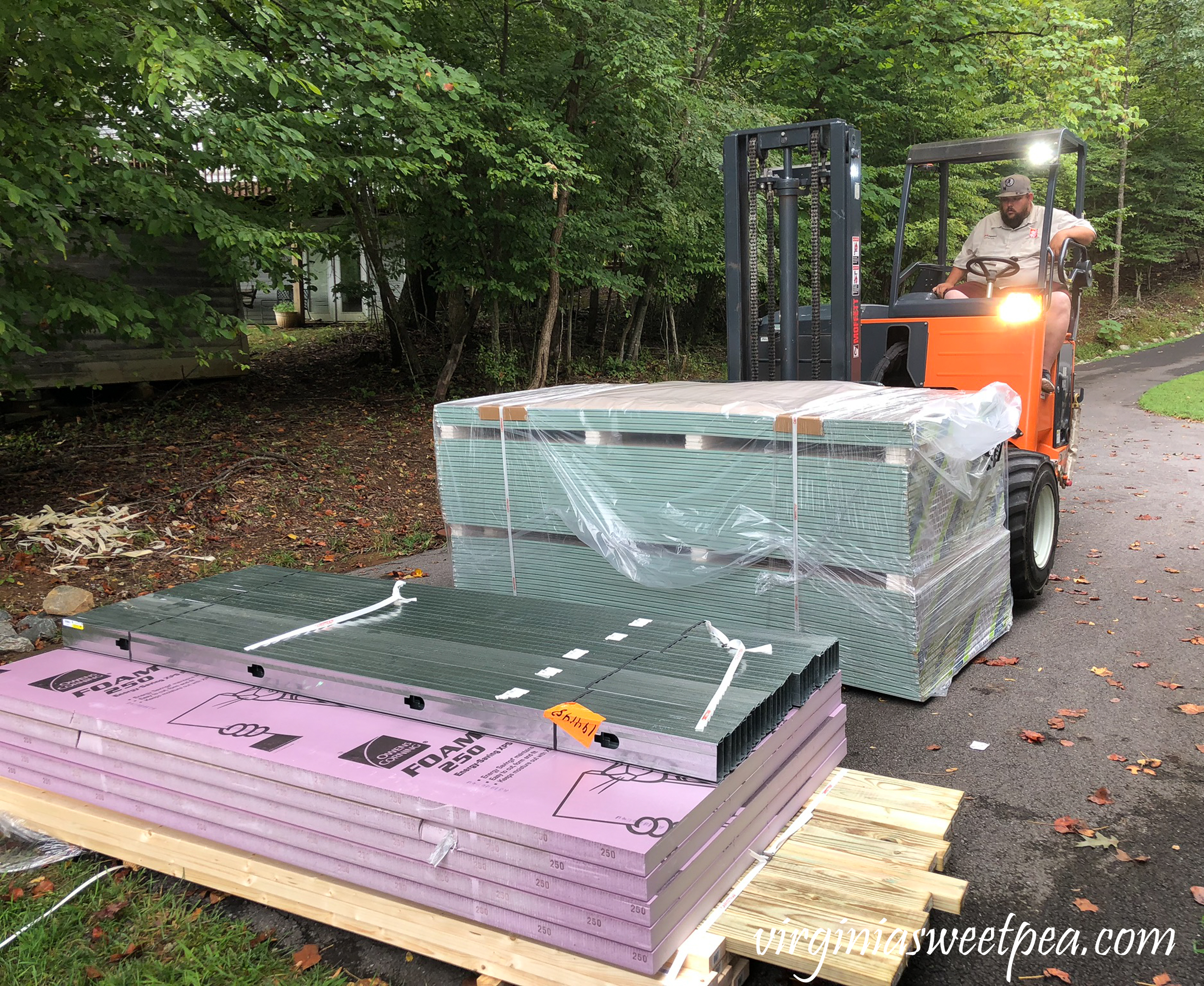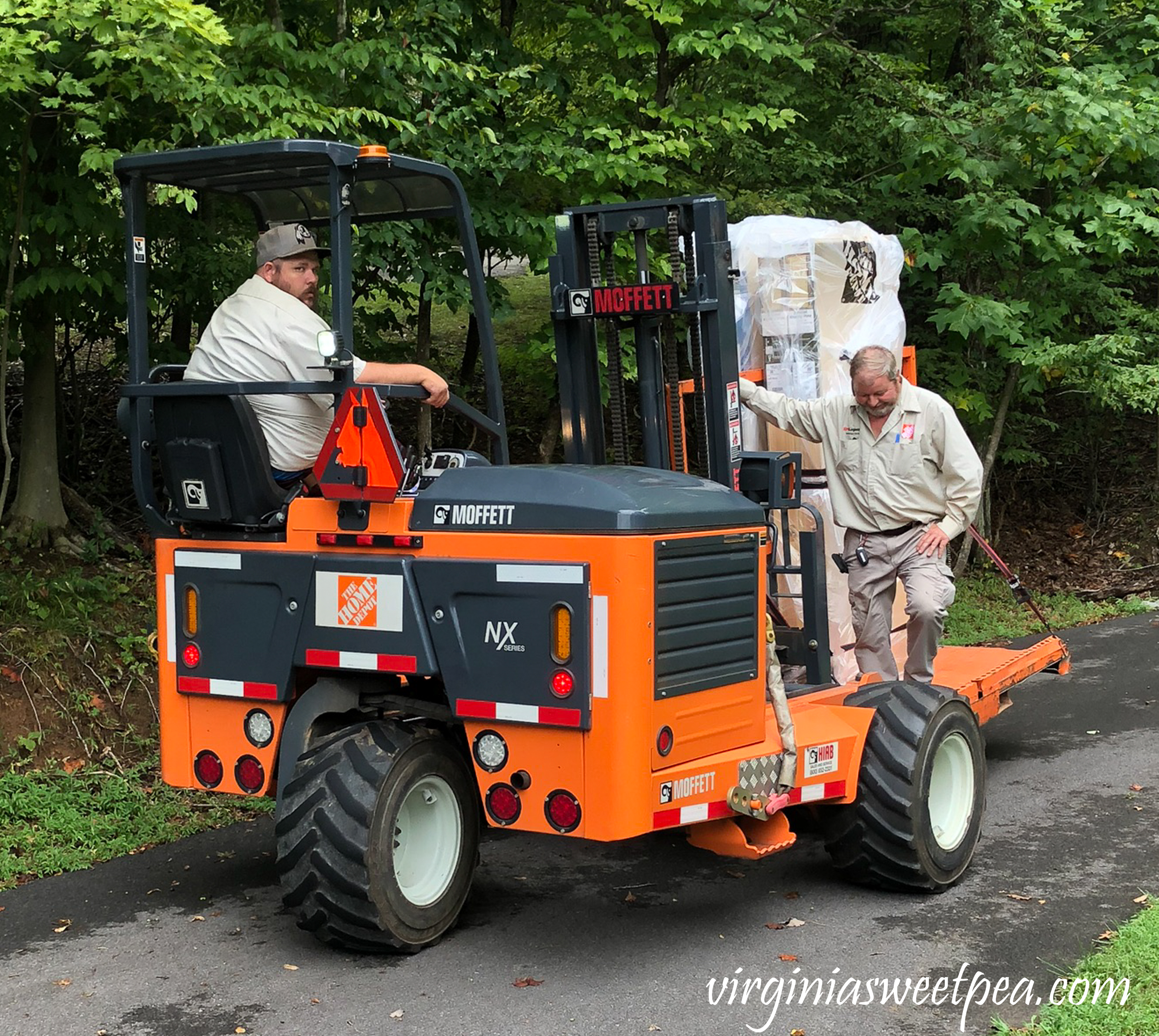 We have a steep driveway and the Home Depot guys parked at the top of the hill and drove our supplies down the hill using this giant forklift.