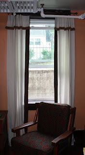 The hardest part of this project was installing the rod. The wall is concrete and the old wood on the window molding is hard as a rock. The screws that came with the rods were designed for drywall, so to quote Tim Gunn, I had to “Make it work.” After a lot of sweating and maybe a bad word or two, the curtains were up. What a difference!