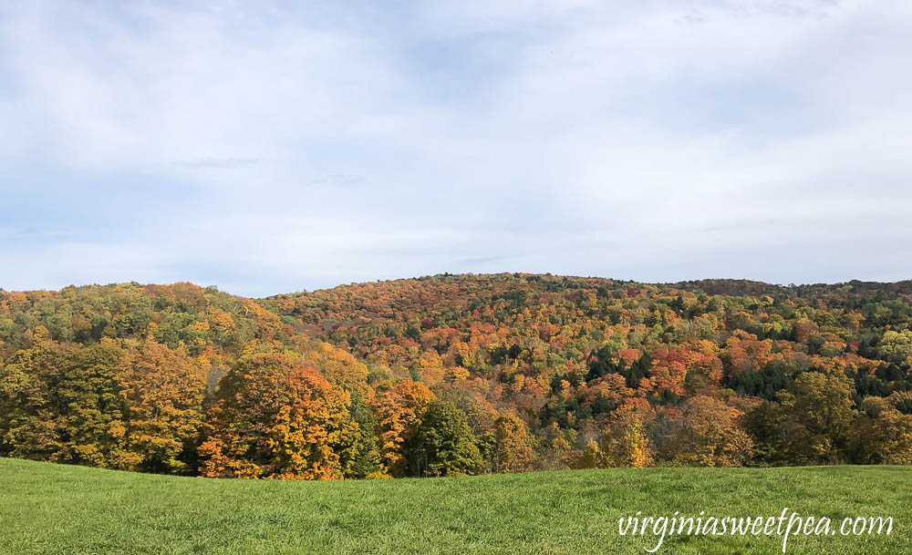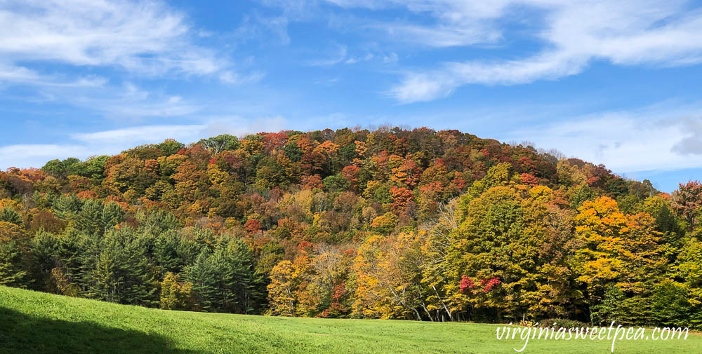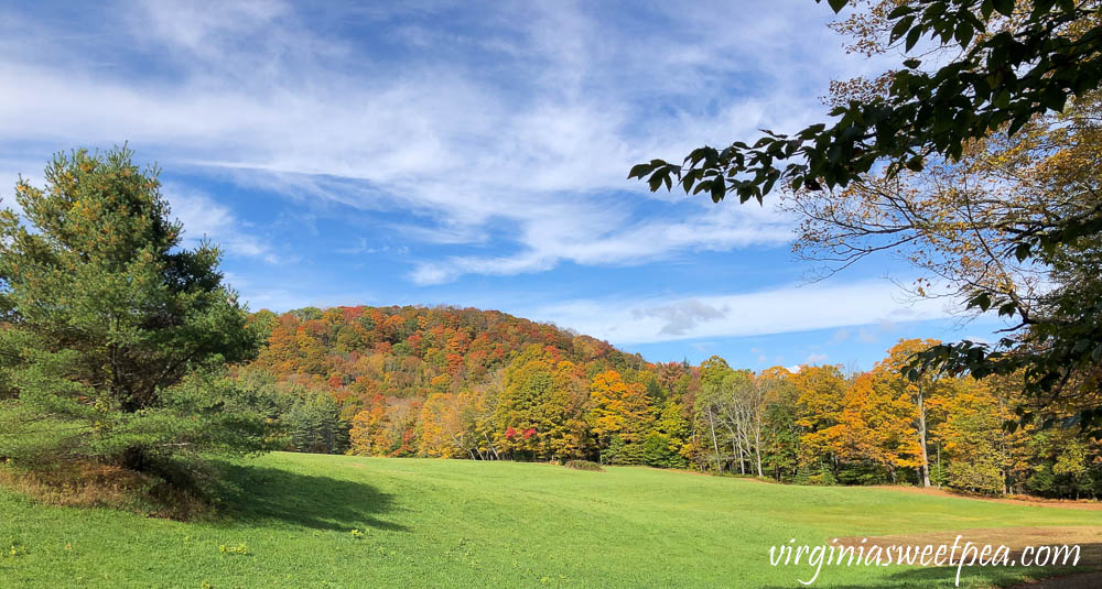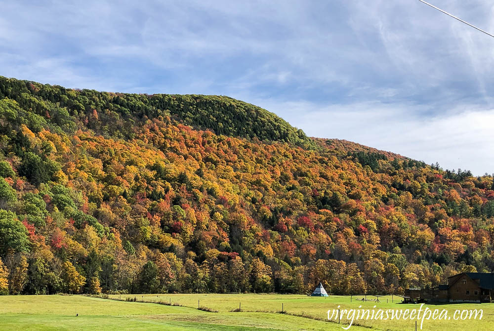 The next day the sun was out, the sky was blue, and the foliage was brilliant on the mountain surrounding The Pogue.