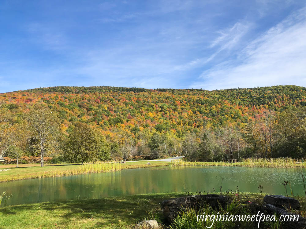 We stopped at Hawk’s Inn and Mountain Resort to take this picture by one of their ponds. We’ve been in Vermont three falls in a row and each fall this place is empty. Their website is under construction so perhaps there is a new owner who is going to get it going again.
