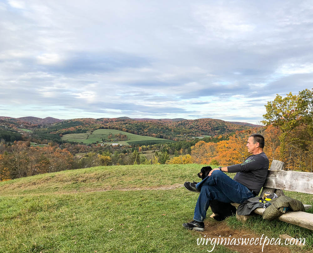 Sherman hurt his leg at the end of our trip so we tried to not let him walk very far. On our last evening in Woodstock, he insisted on hiking to the top of Mount Tom. His leg loosened up as he walked and he had no problem hiking the one mile to the summit of Mount Tom. We were so happy that led us to the top because the evening views were gorgeous.