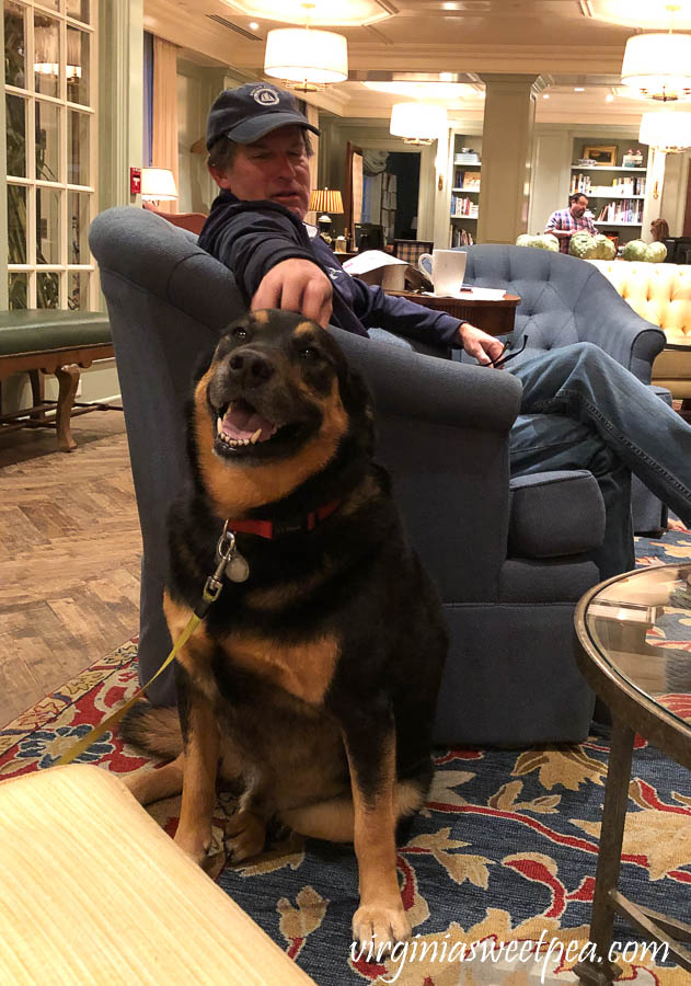 We arrived on a Sunday evening and there was a line of people waiting to check in to the inn. I was in line with Sherman and would you believe that a man in line with me recognized Sherman from a previous visit? The staff at Woodstock Inn really liked Sherman and greeted him every time they saw him.