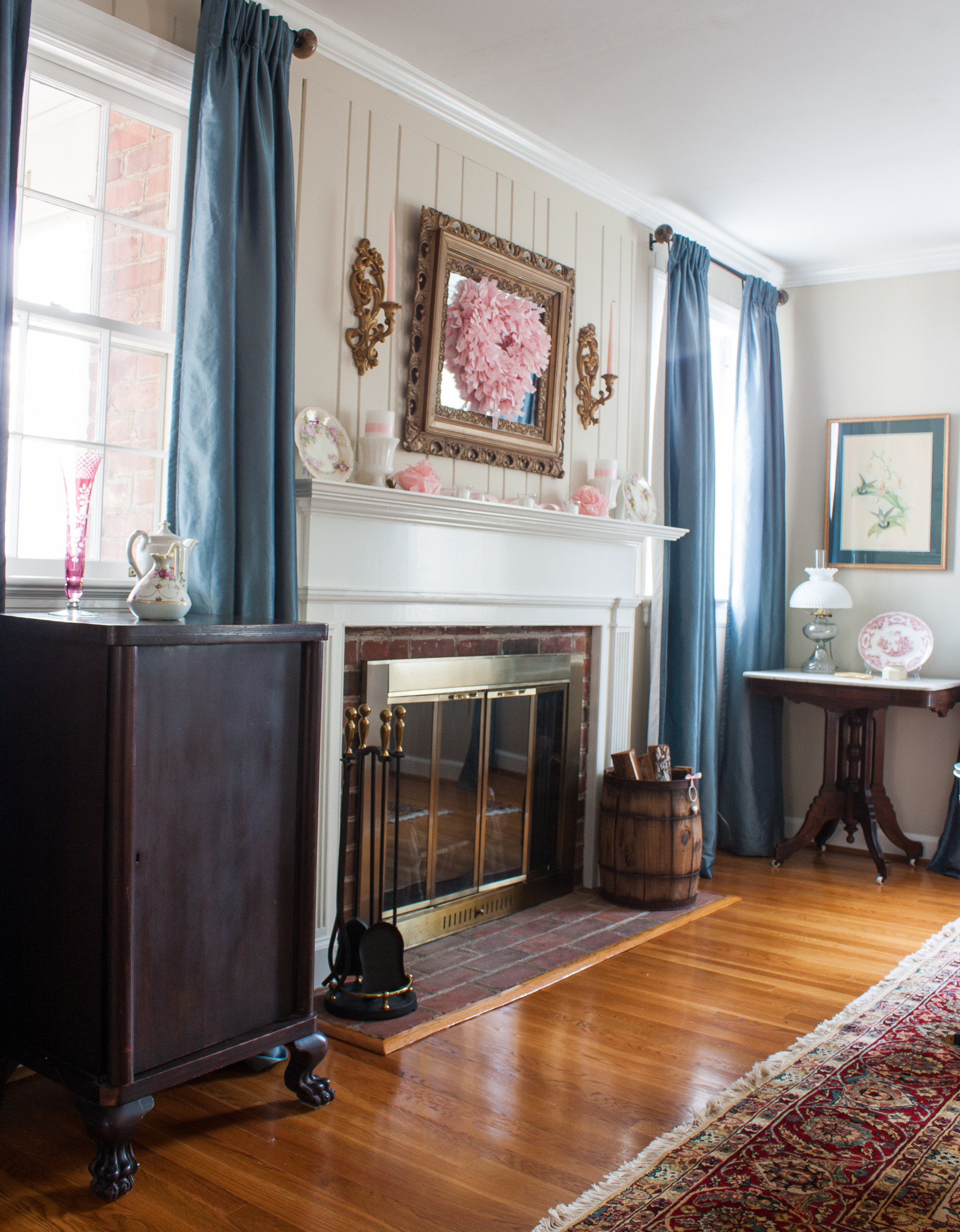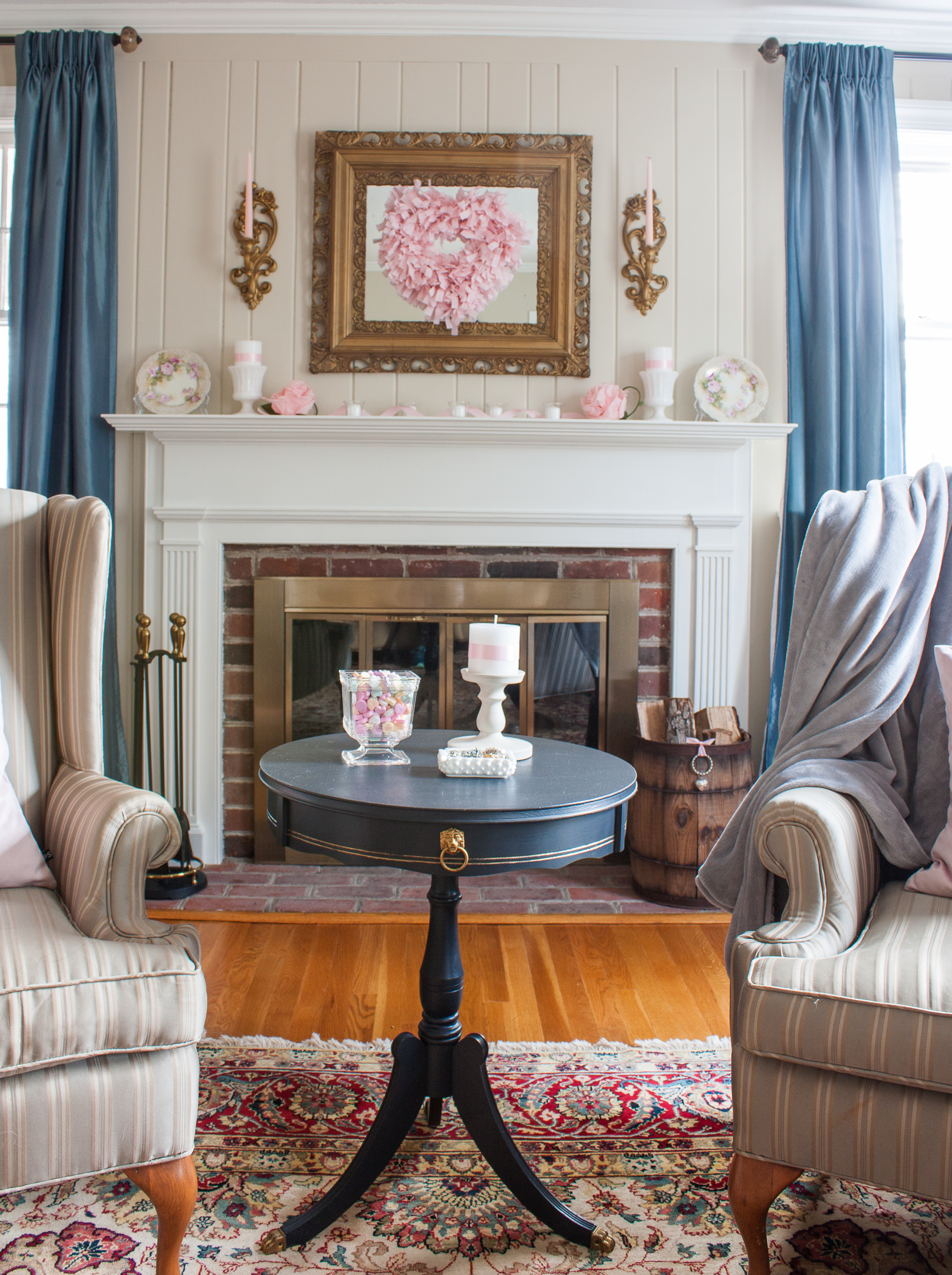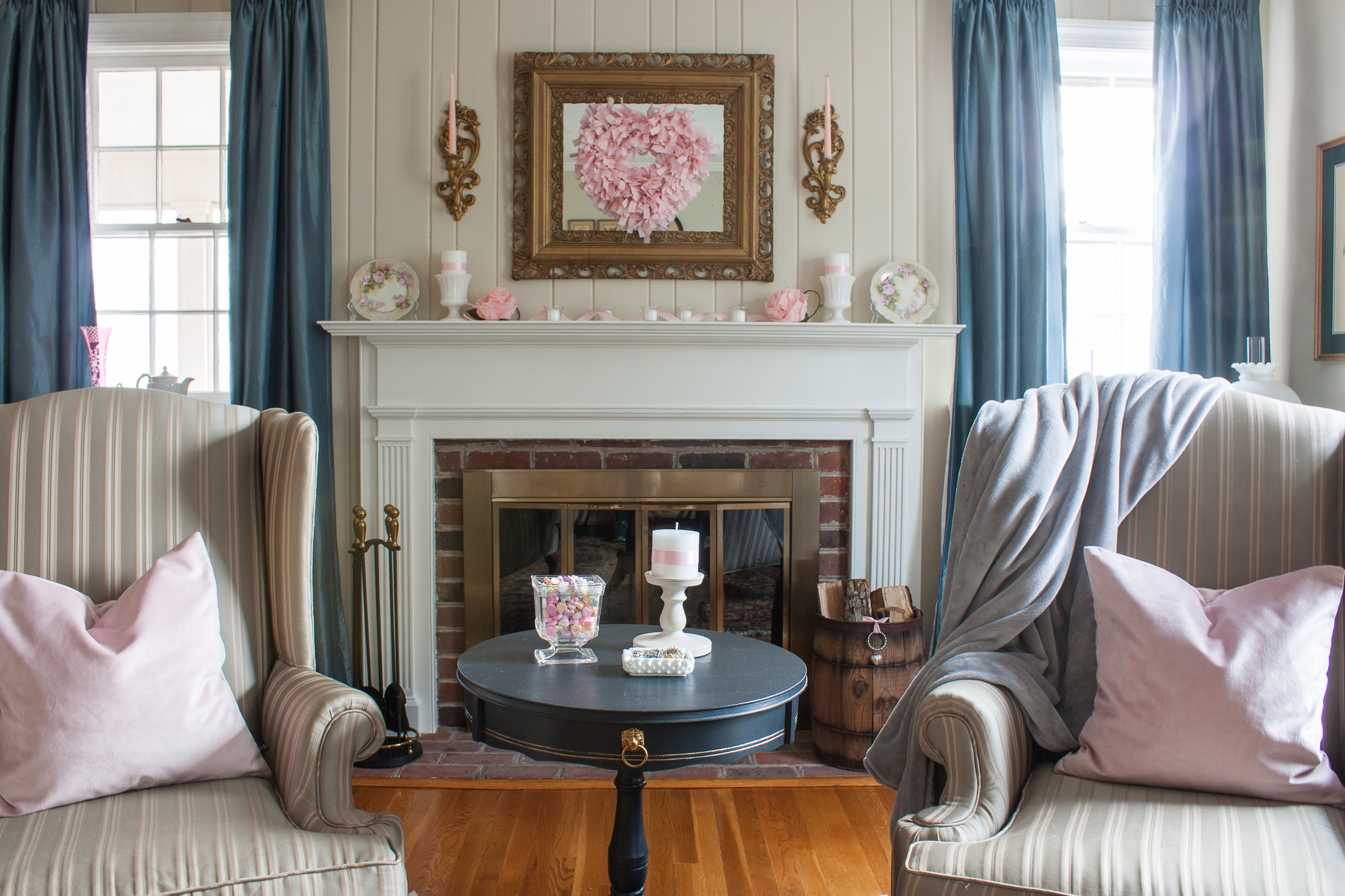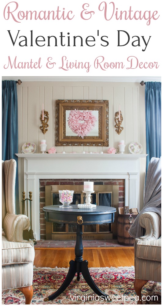 Romantic and Vintage Valentine’s Day Mantel and Living Room Decor