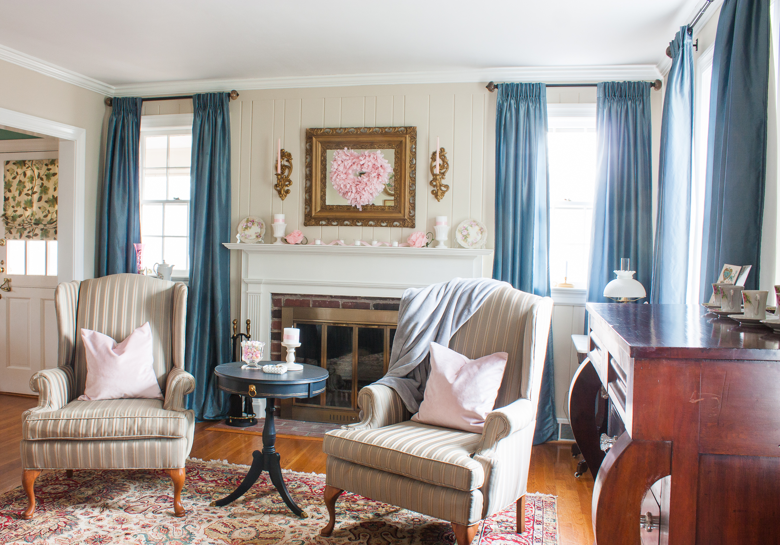 Paula, your romantic living room is gorgeous! Those blue curtains accented with touches of pink is beautiful. You have so many pretty vintage plates and other items that create such lovely vignettes. It has been so much fun being on this blog hop with you! Happy Valentine’s Day!!!