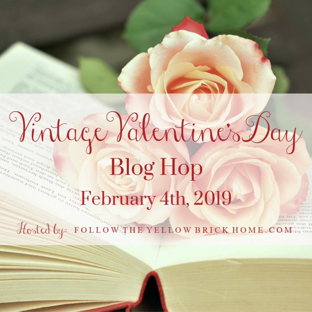 I’m sharing my Romantic and Vintage Valentine’s Day Mantel and Living Room Decor along with a talented group of bloggers for a Vintage Valentine’s Day Blog Hop. This tour is organized by my friend Amber from Follow the Yellow Brick Home. I love Amber’s gorgeous old home and how she decorates it so beautifully with vintage style.