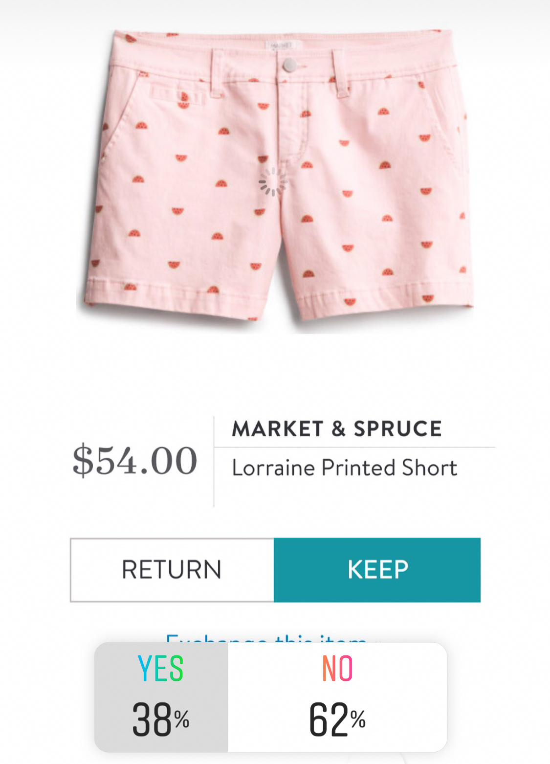 4. Yeah I thought the watermelons were hearts too. While they are cute, the shorts look like what my 3-year old granddaughter would wear. One of my blogging friends is thinking of going to work for StitchFix.