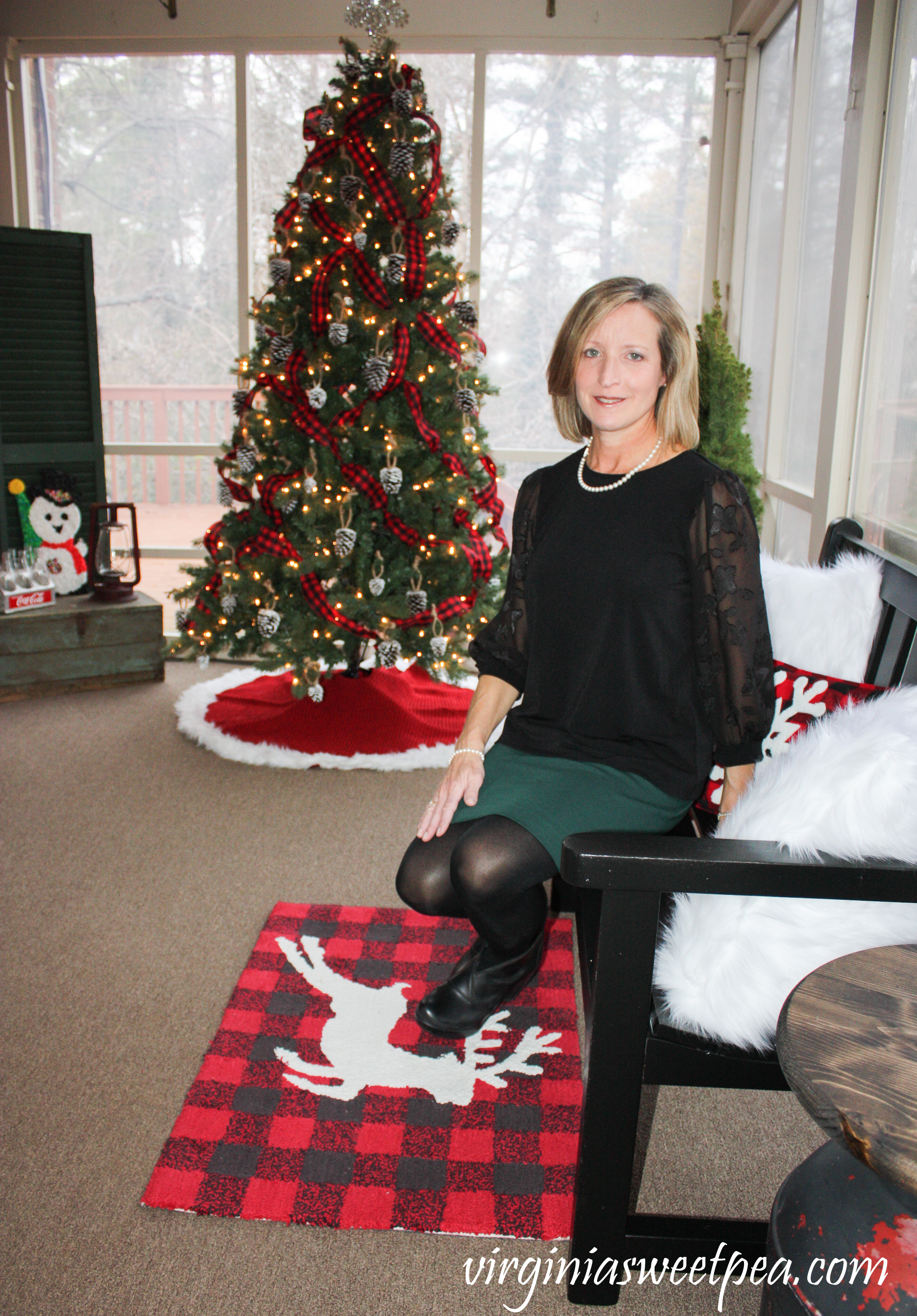 I usually take my Stitch Fix pictures outside, but Mr. SP wanted to do one on our decorated porch since it looks so festive. You are getting a sneak peek at my decor, I’ll share a full tour of my Christmas porch on Tuesday.