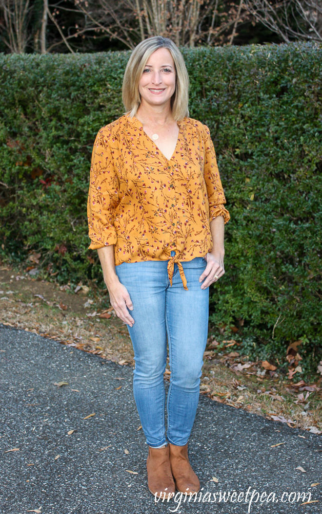 When I saw the preview picture for this Mason & Belle Centra Tie Front Top, I really liked it. Once I tried it on, I knew that I was keeping it. I love the style, pattern, and especially love the tie front.
