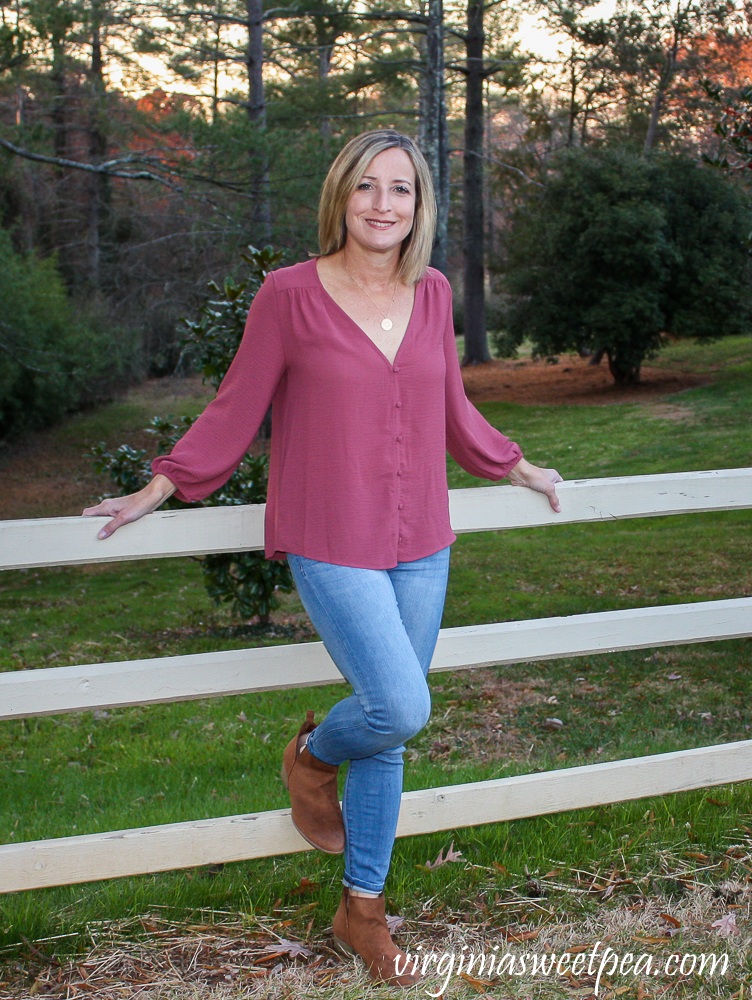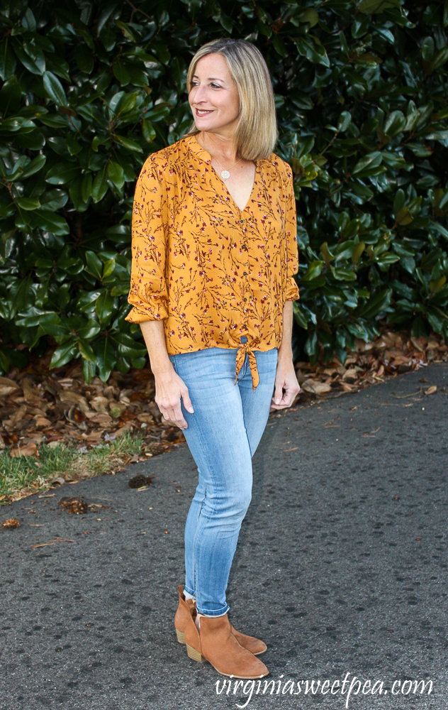 I paired this top with Liverpool Kaylee skinny jeans from my October Fix and booties from Payless.
