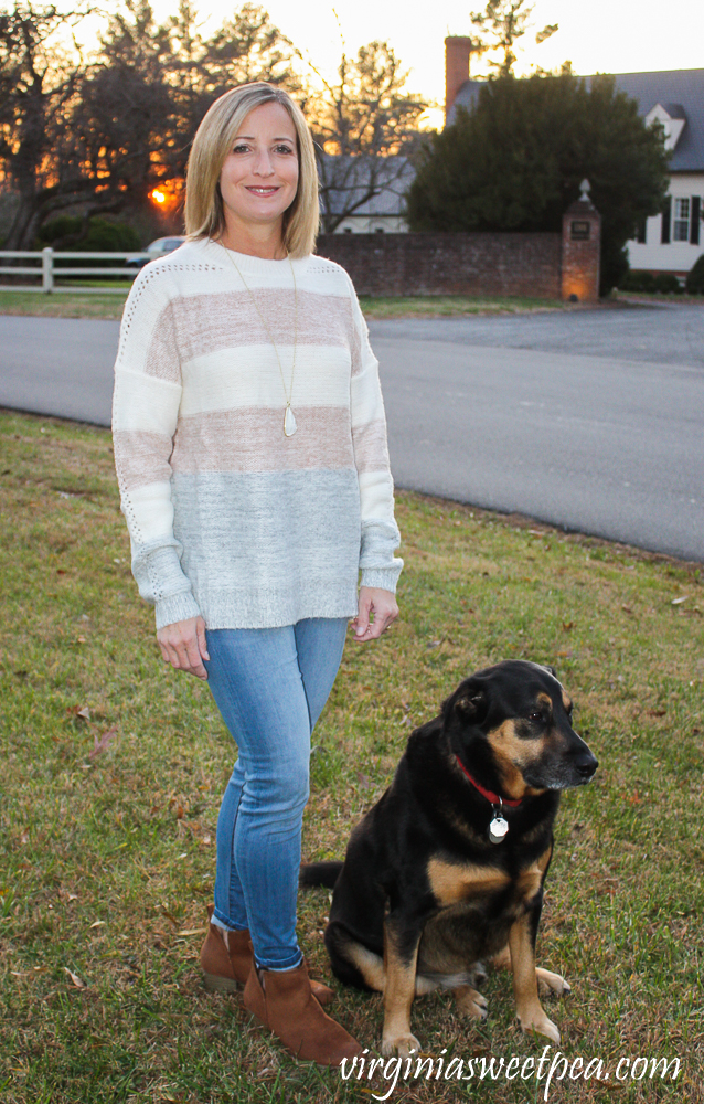 Last month Sherman wasn’t very cooperative when we shot Stitch Fix pictures. This month I tried to get as many pictures with him as I could. He almost always turns his head to the side when the camera is pointed at him.