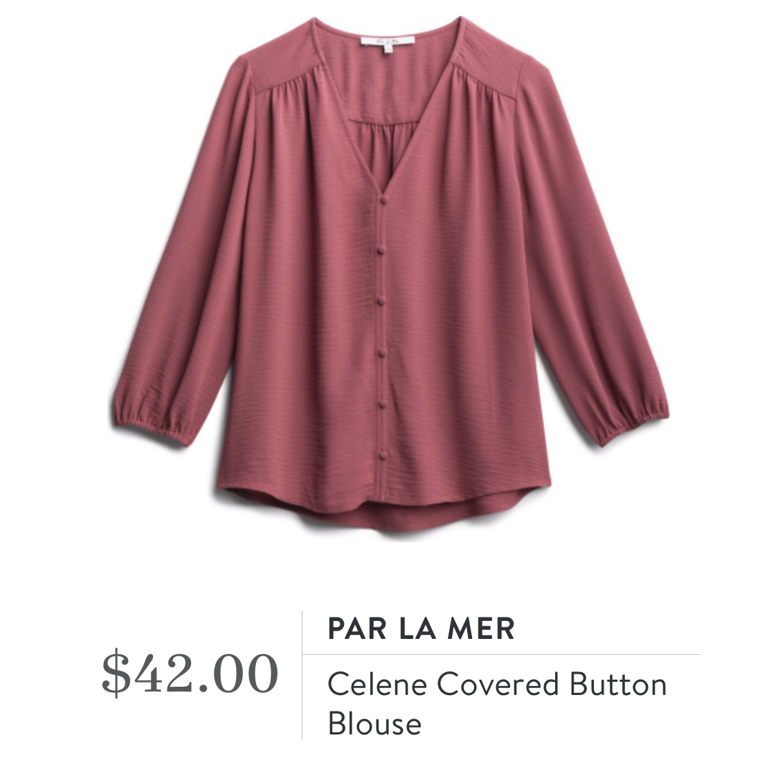 I loved the color and style of this Par La Mer Celene Covered Button Blouse.