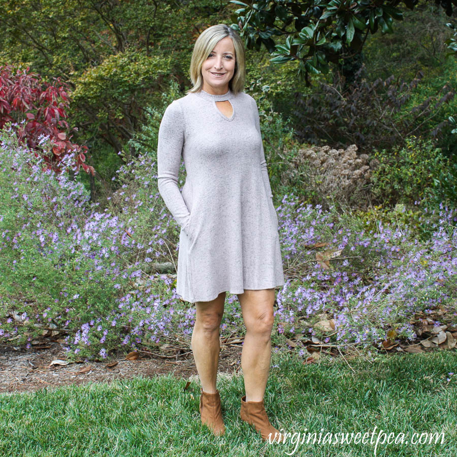 I love Stitch Fix dresses and asked Brittany to send one my way for November. She selected this butter soft Fortune + Ivy Caressa Keyhole Hacci Knit Dress.