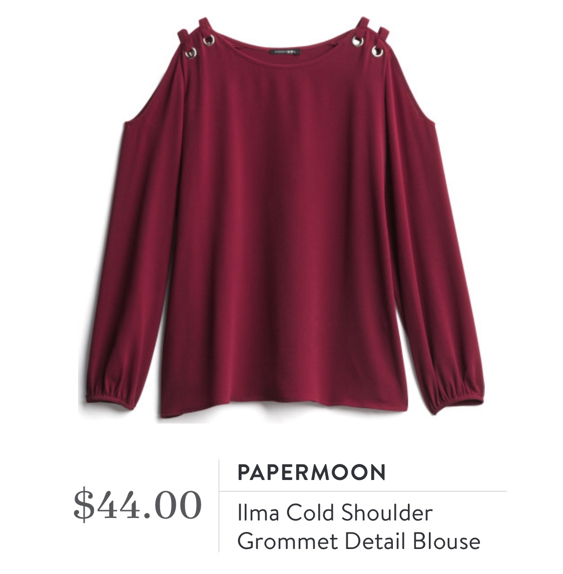 Papermoon Ilma Cold Shoulder Grommet Detail Blouse – $44 – Keep