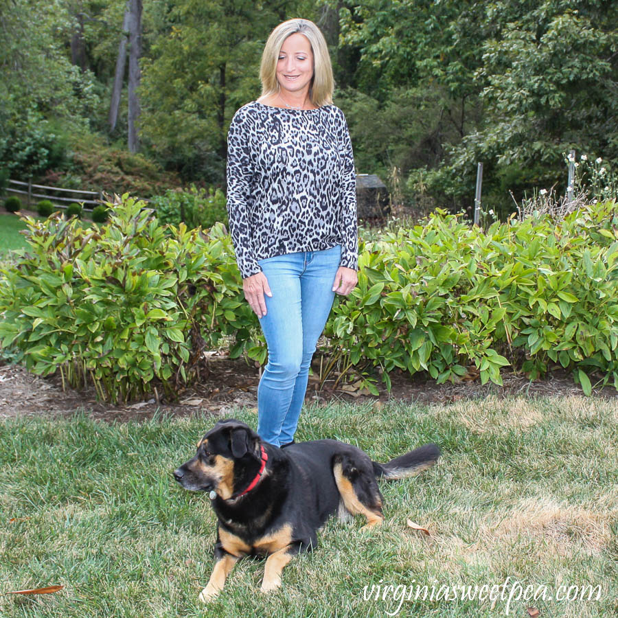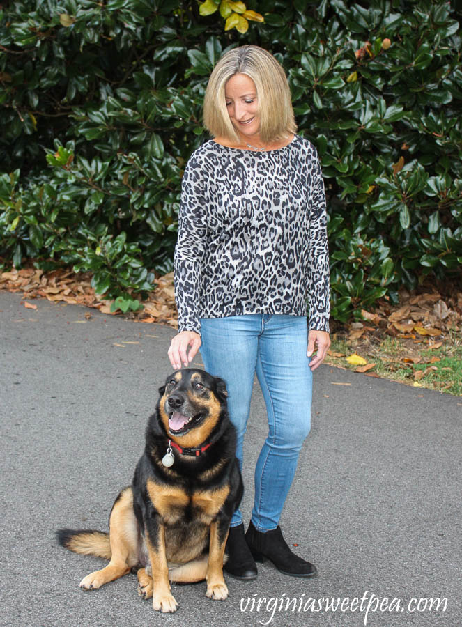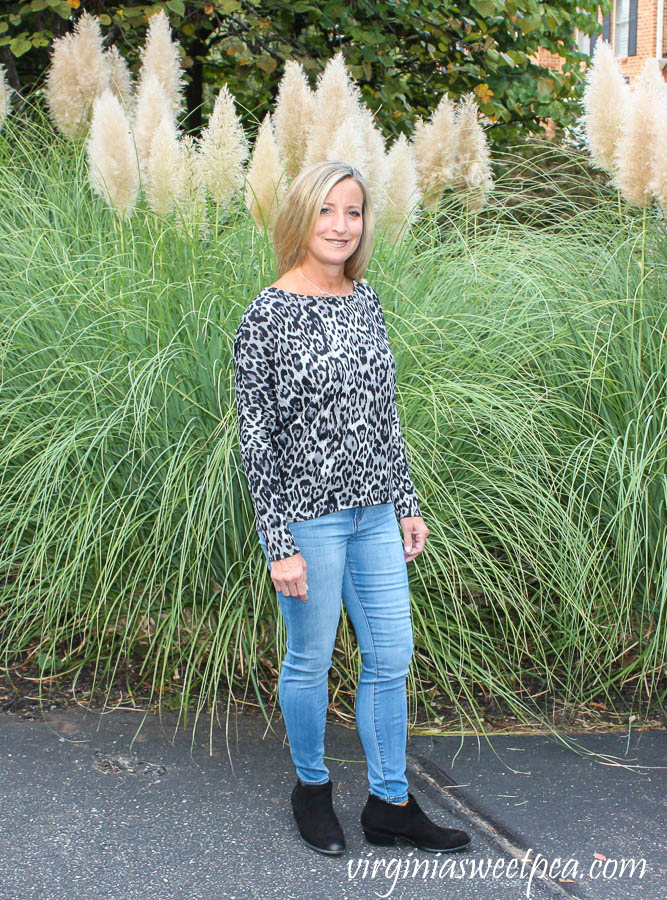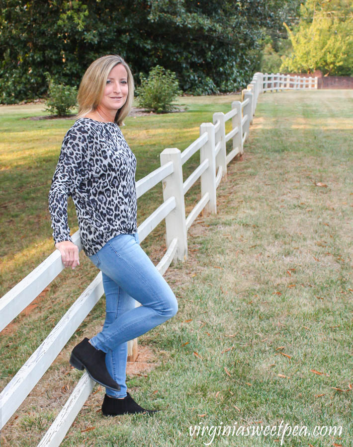 Leopard is super popular this fall.  I love both the leopard pattern and also the comfortable fit and style of this Fortune+Ivy Alannis Dolman Sleeve Knit Top.Stitch Fix Review for October 2019 - Fortune + Ivy Alannis Dolman Sleeve Knit Top