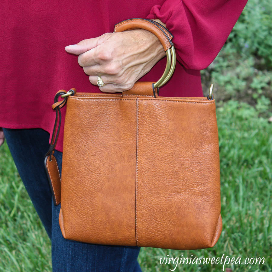 I love the size of this handbag, it’s just large enough to hold what I normally carry and it has an adorable ring handle.Stitch Fix Review for October 2019 - Papermoon Ilma Cold Shoulder Grommet Detail Blouse with Sole Society Handbags Duff Crossbody