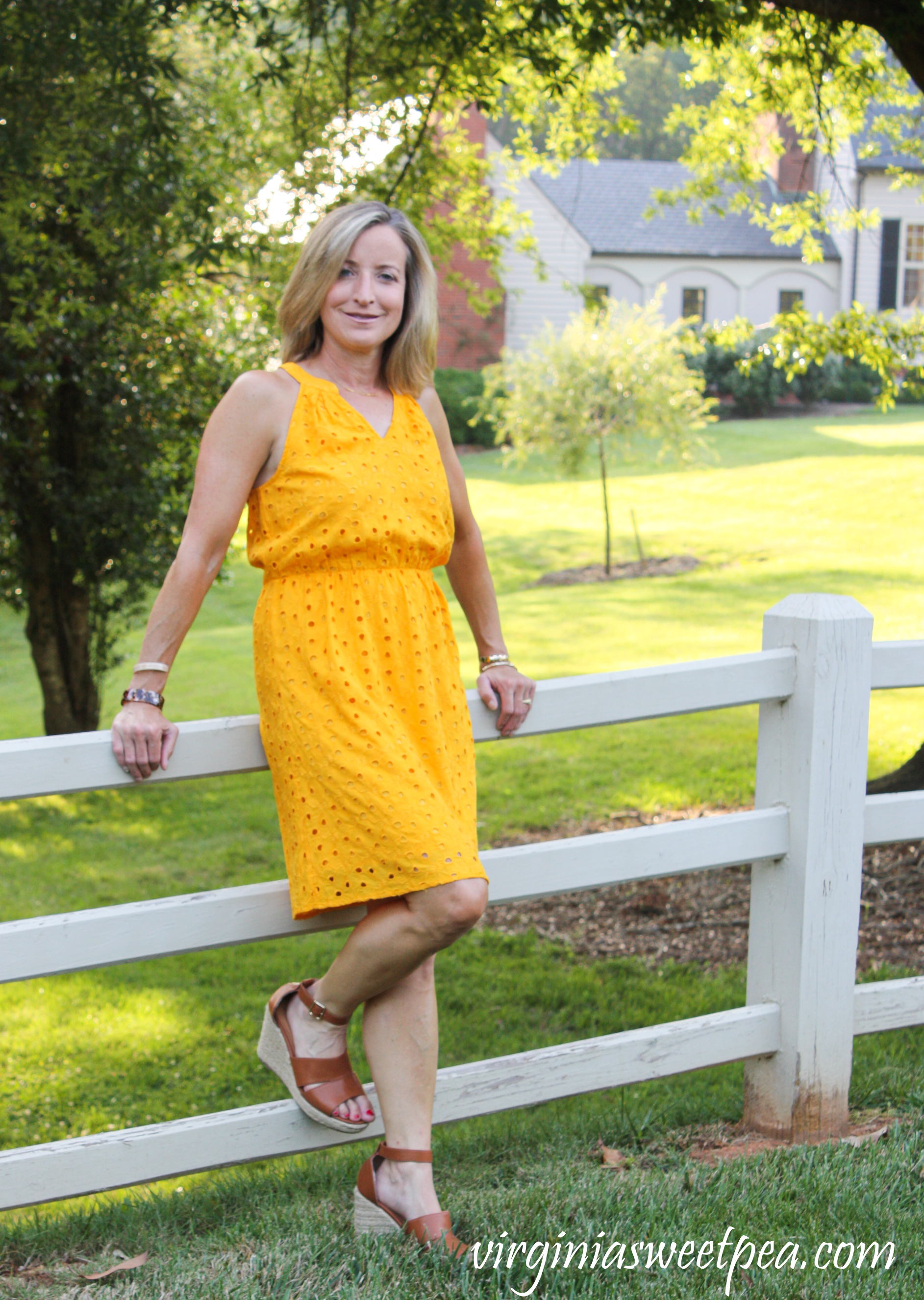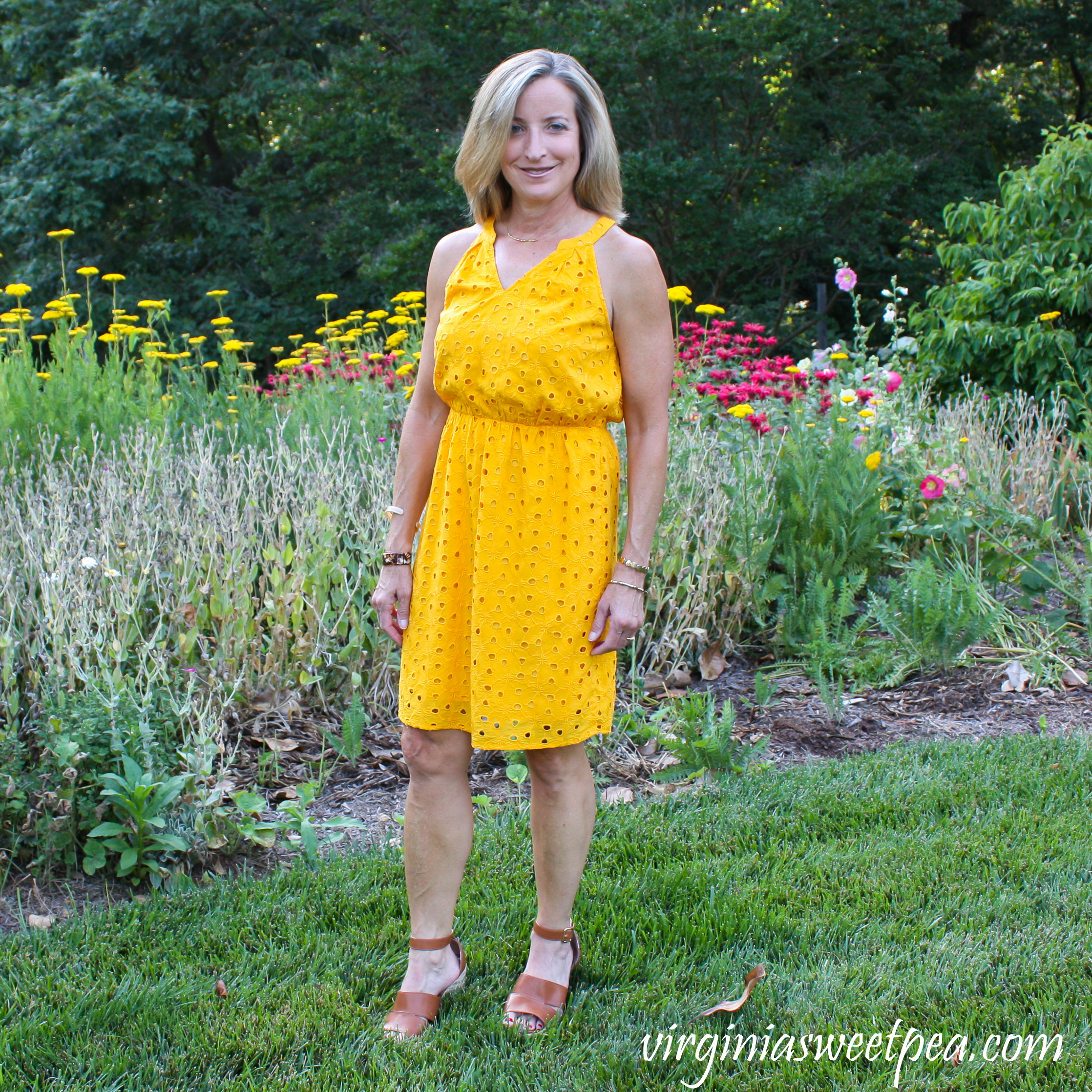 The style of this Market & Spruce Brea Eyelet Dress is exactly the style of dress that I like. It’s sleeveless and has an elastic waist which makes it super comfortable. I loved the yellow color and eyelet fabric.