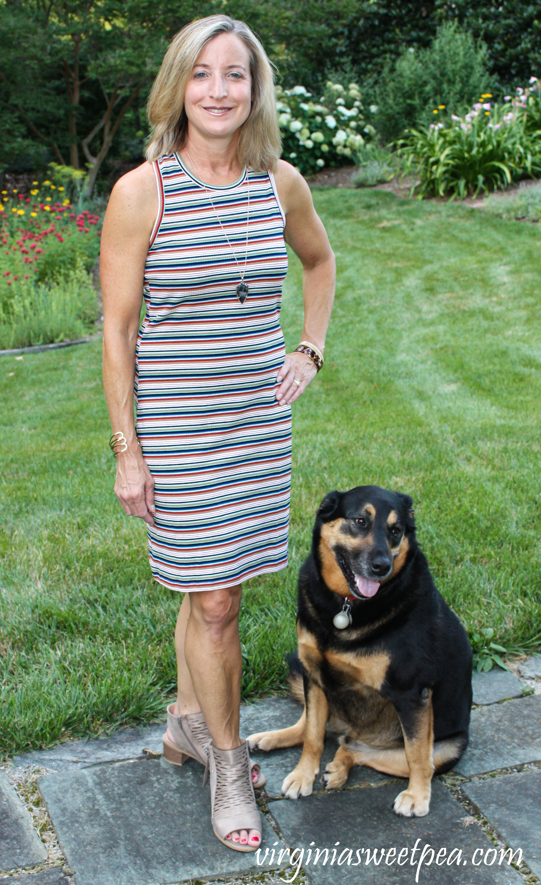 I really loved the ywllow dress on you, the maxi, the striped dress! I thought the blue dress was a lvely color and style on you, too bad it was too big! I love seeing Sherman in the pics!