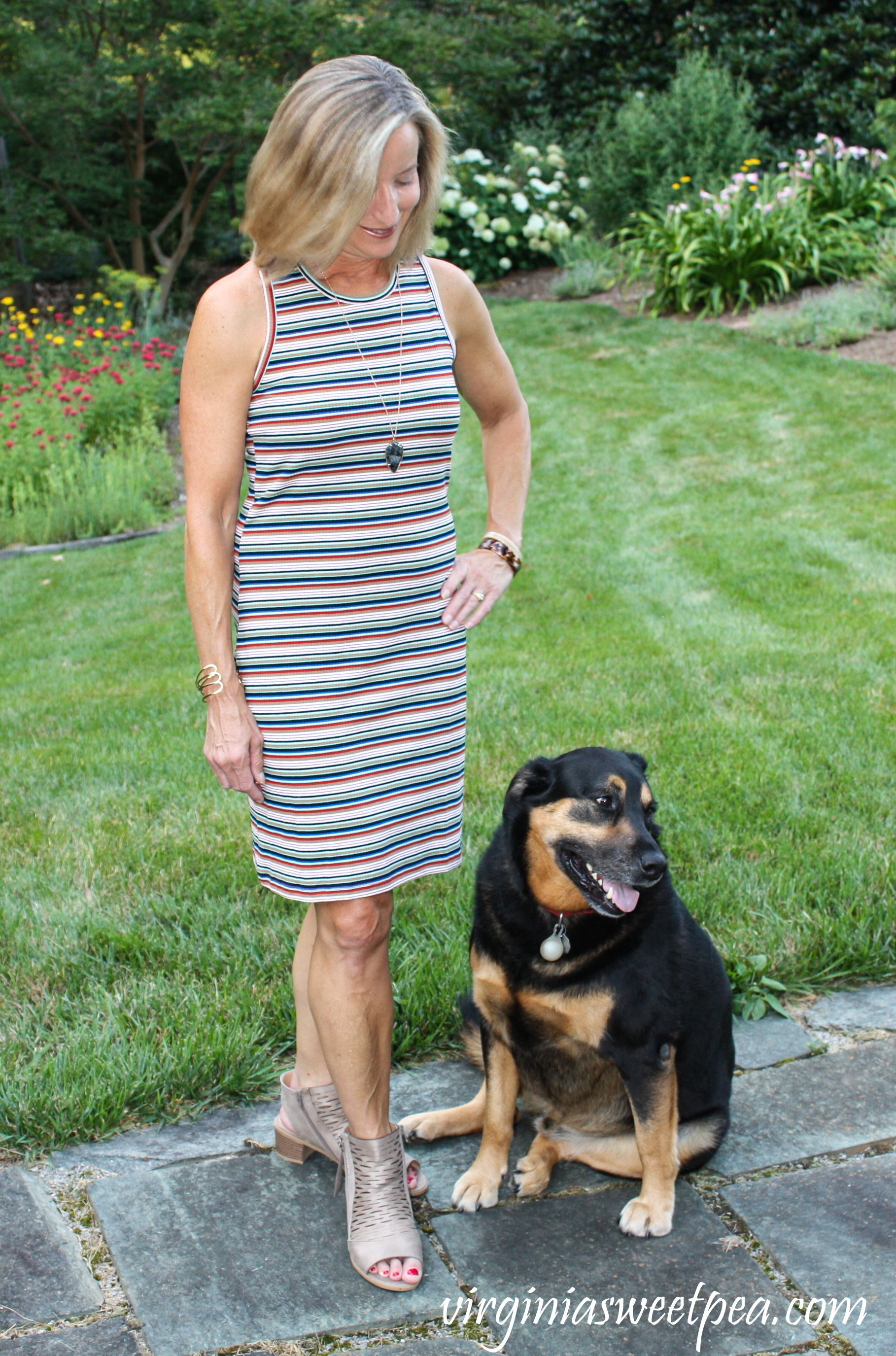 Sherman likes to “help” with Stitch Fix pictures but on the day that we took these it was super hot and he didn’t feel much like posing with his Mama. During this dress change he made his way outside to be in a few of my pictures.