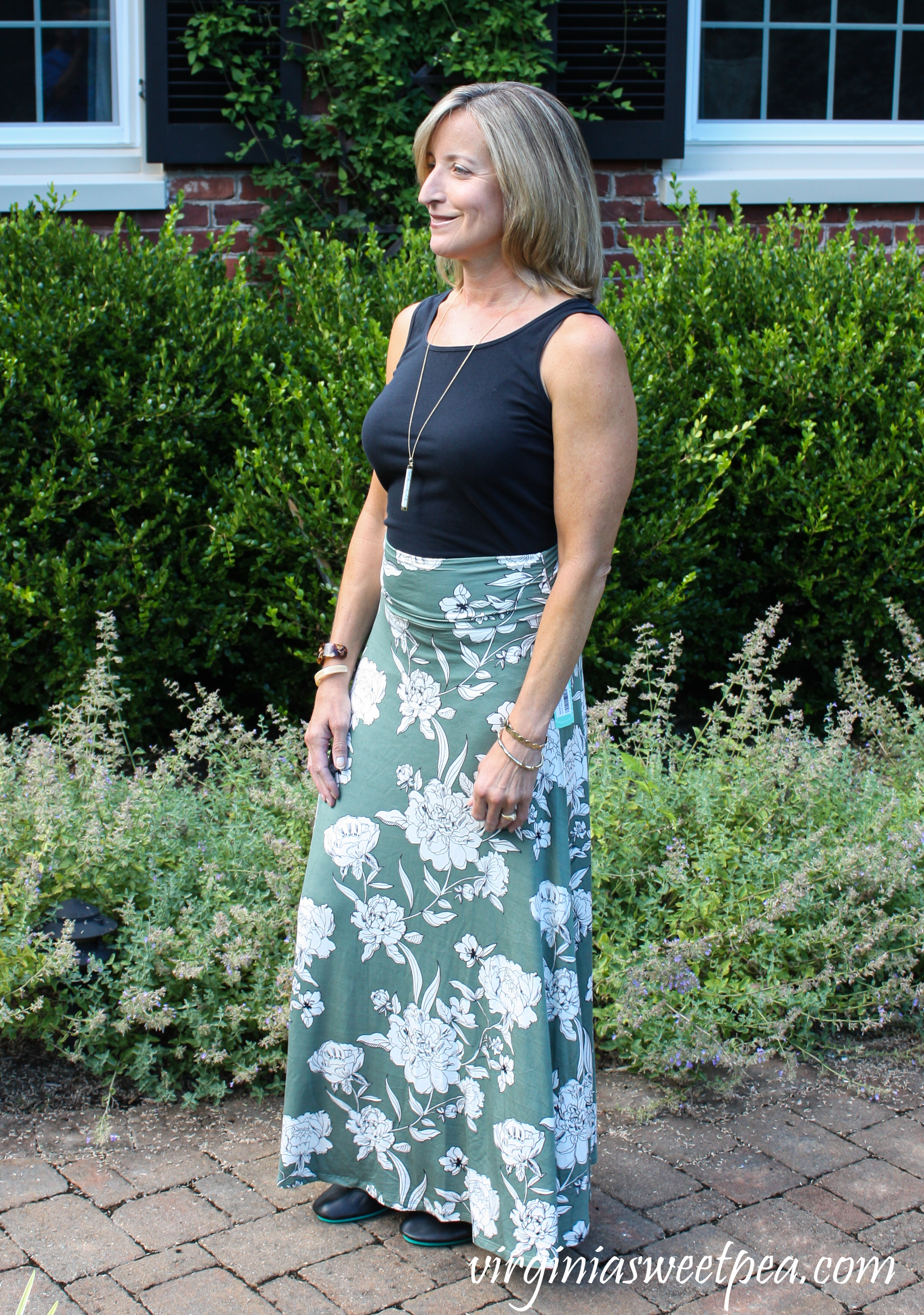 For years I have told Brittany that I do not like maxi dresses so I was surprised to find this Market & Spruce Joven Knit Maxi Skirt in my box. The joke was on me because this skirt was soooo soft and comfortable and I loved its pattern.