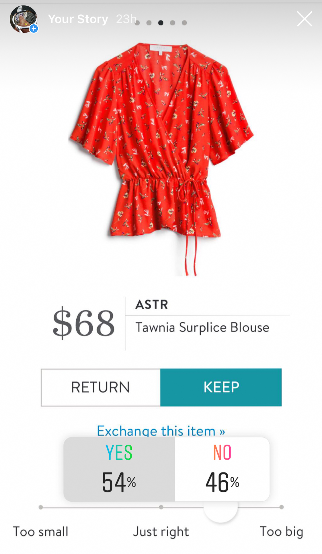 This top got the thumbs-up on Instagram.  I really liked it and it fit me perfectly, but I didn’t keep it because I didn’t want to spend $54 on it.