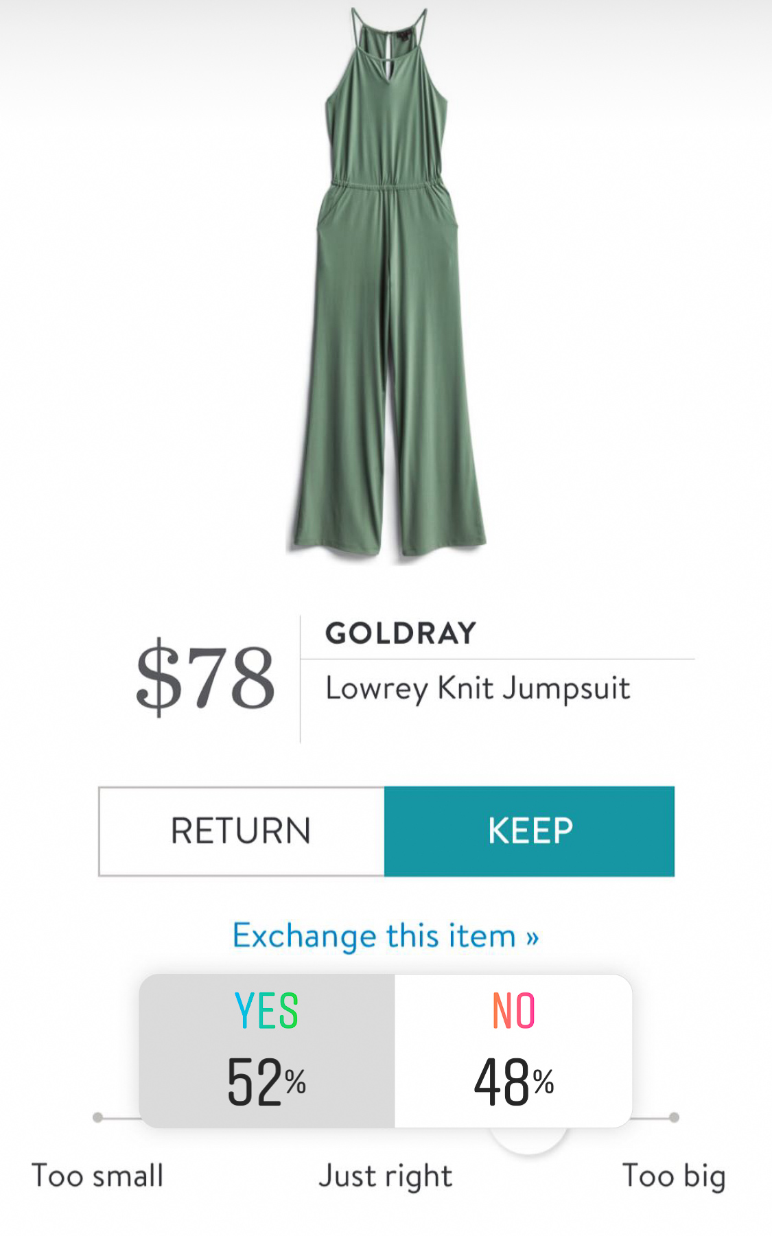My Instagram friends were also almost evenly split in their opinion of this jumpsuit.  It was super fun to try this on, but I didn’t keep it.