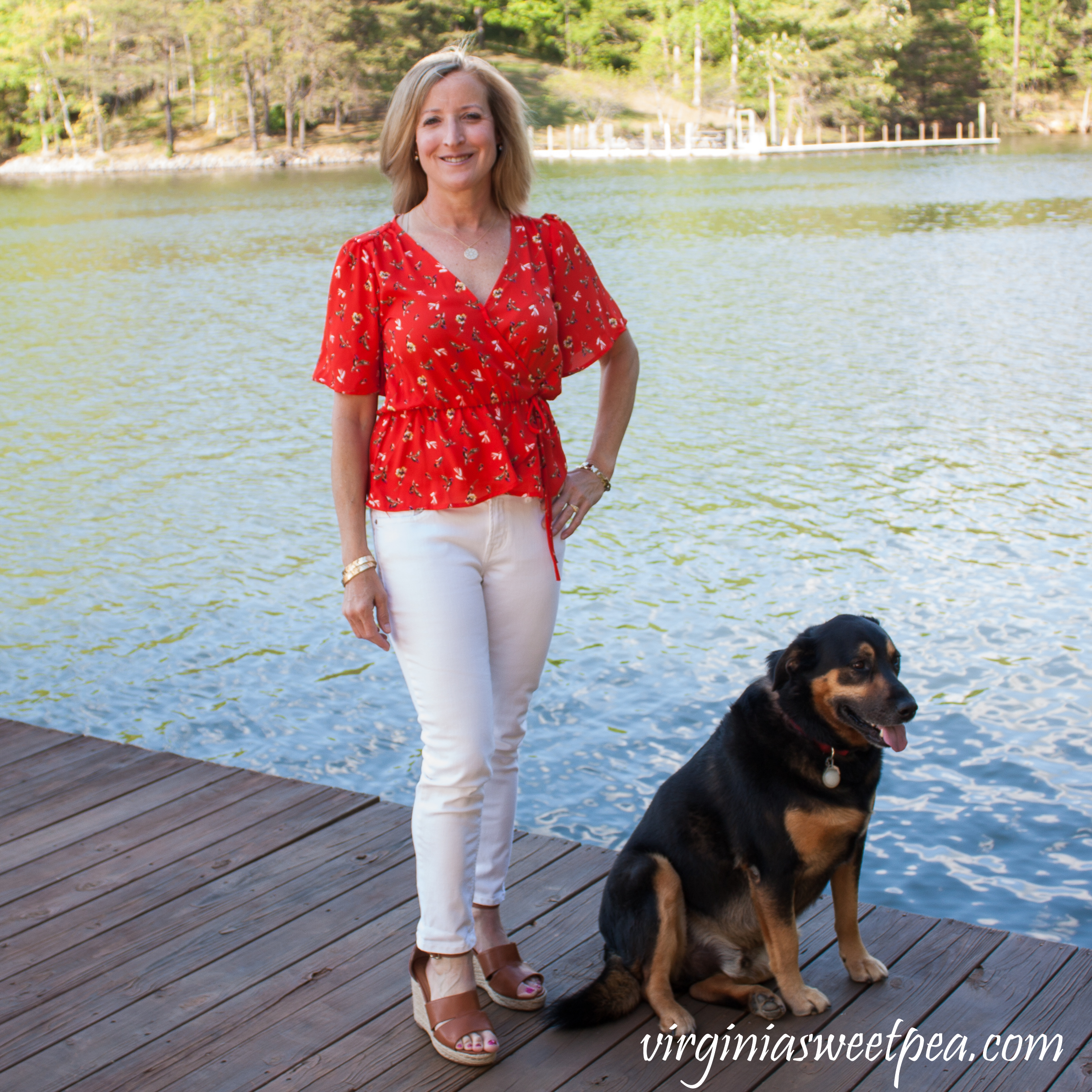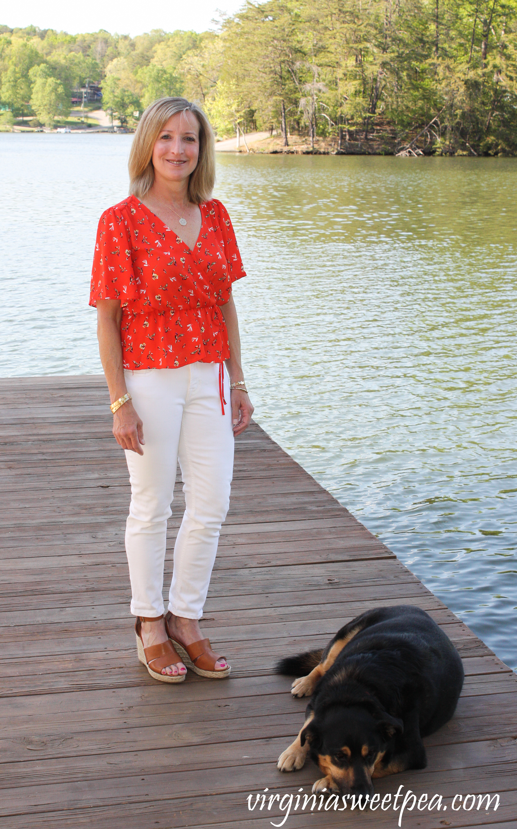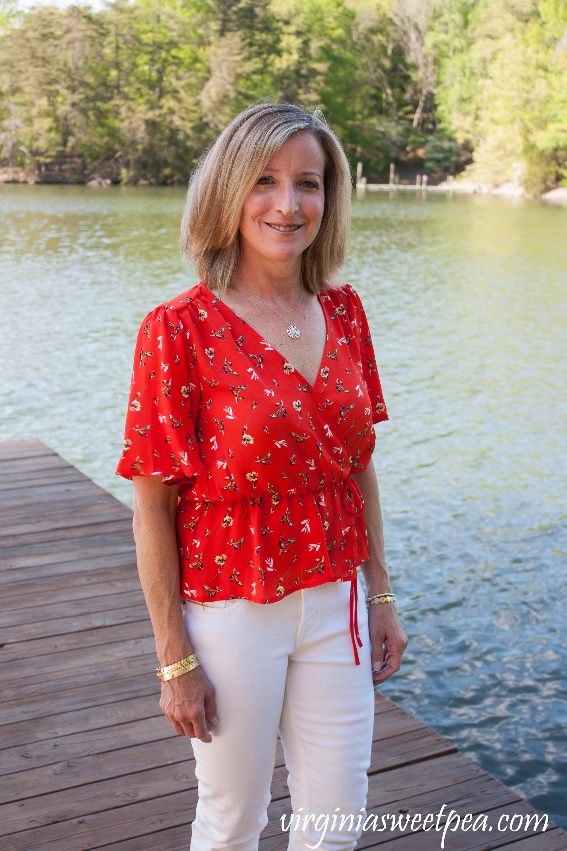 Red is my favorite color and a wrap dress is my favorite style, so I knew that I would like this wrap style blouse.