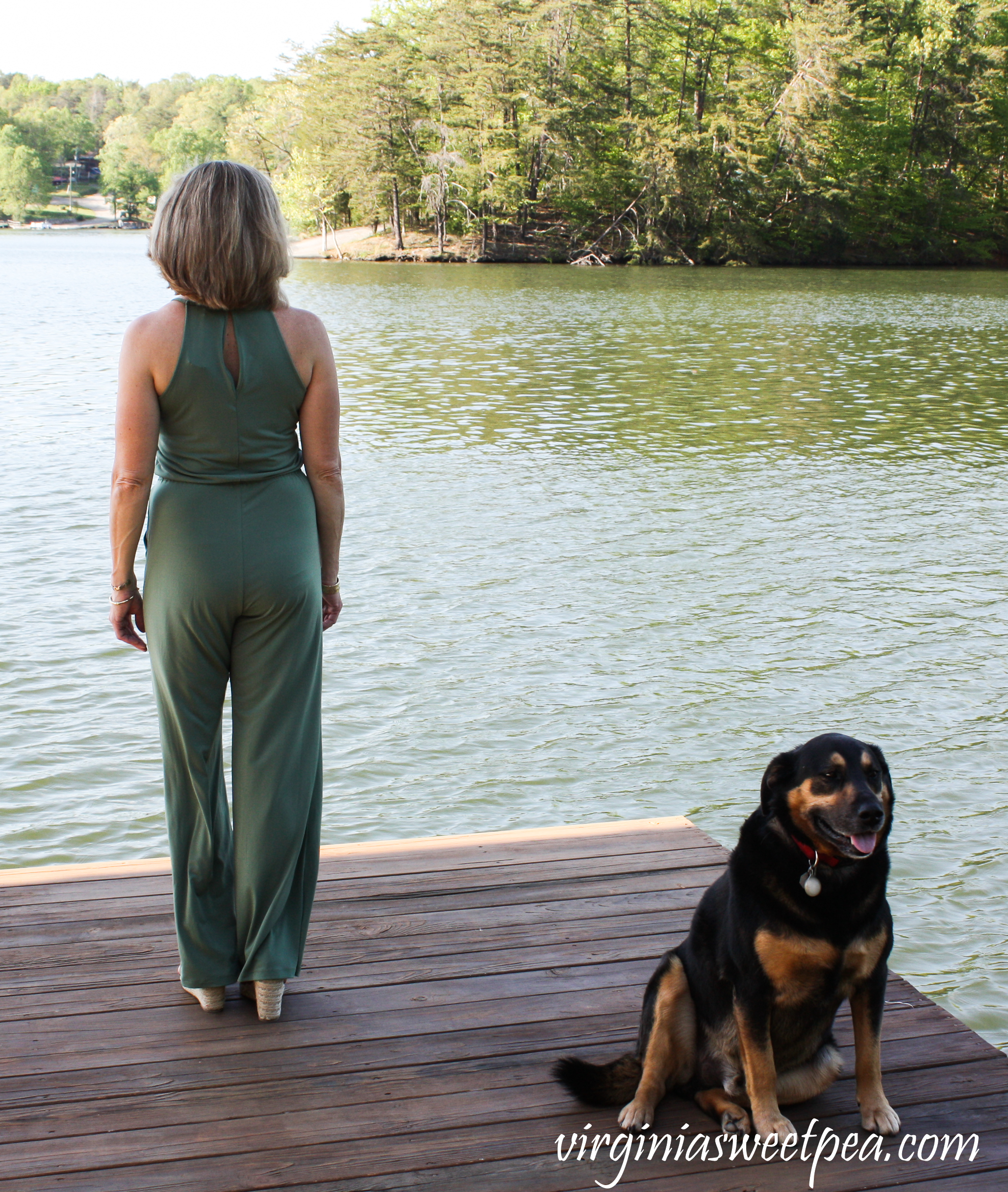 Here’s a peek at the back of the jumpsuit.  Sherman was a good helper this month and posed for several pictures.  At this point in the day he had already been on one boat ride and was hoping for a second.