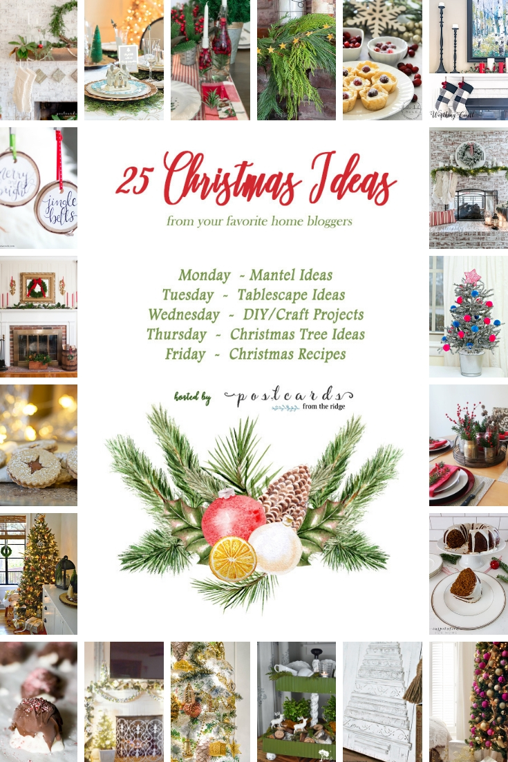 I’m sharing my mantel as part of a week-long Christmas Ideas Tour hosted by Angie from Postcards from the Ridge. I adore Angie’s decorating style and if you’ve never visited her blog, I promise that you’ll enjoy it. Today on the tour we are sharing our Christmas mantels. You’ll find links to all of the mantels shared today and for the other projects that will be shared the rest of the week at the end of this post.