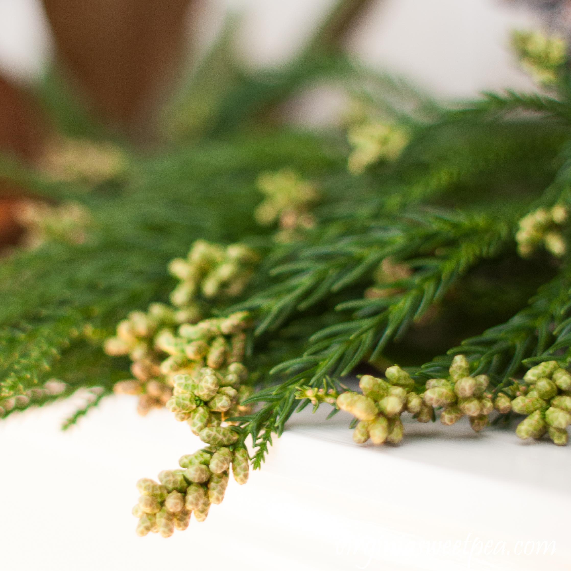 Arborvitae is nice to use on a mantel since its greenery is flat.
