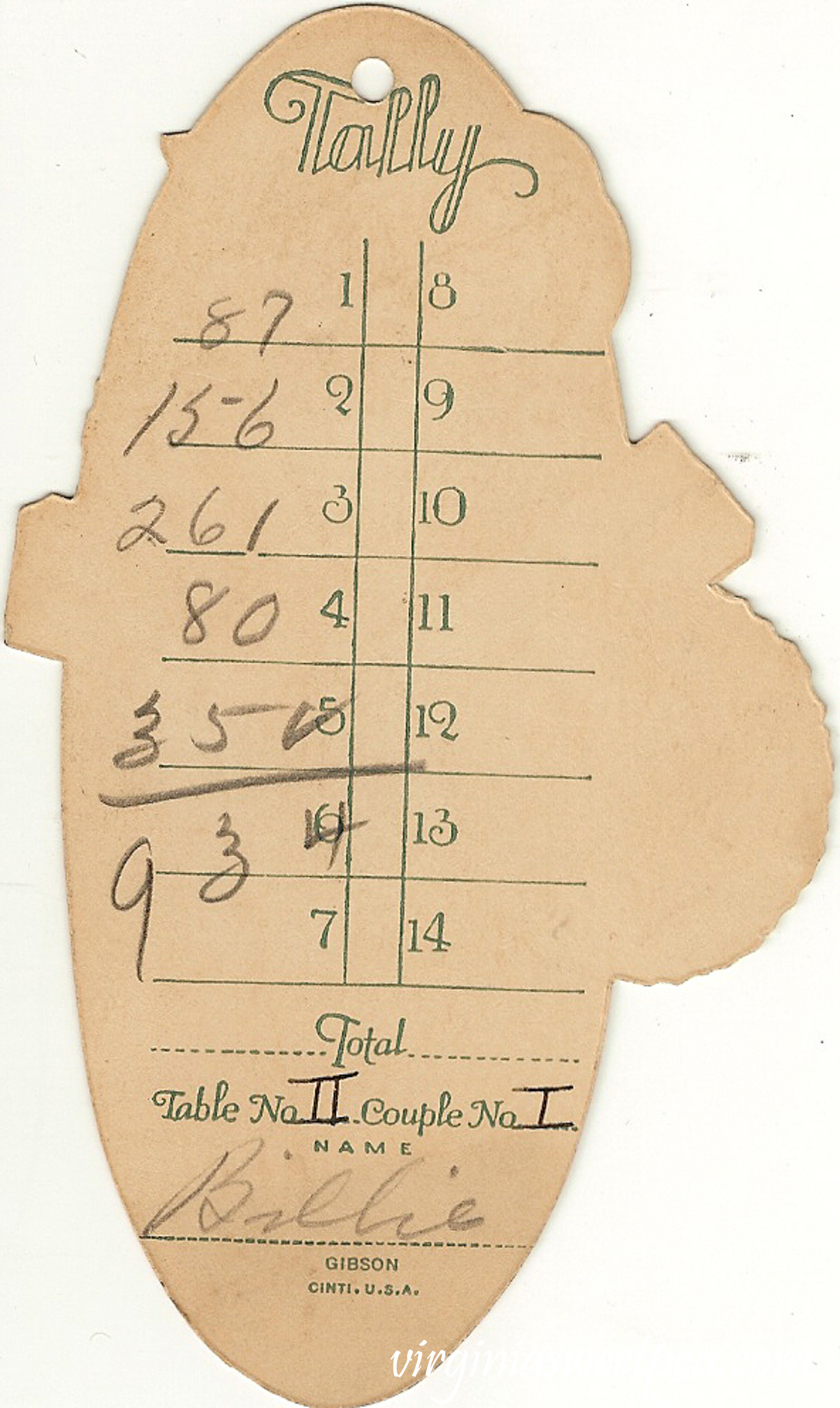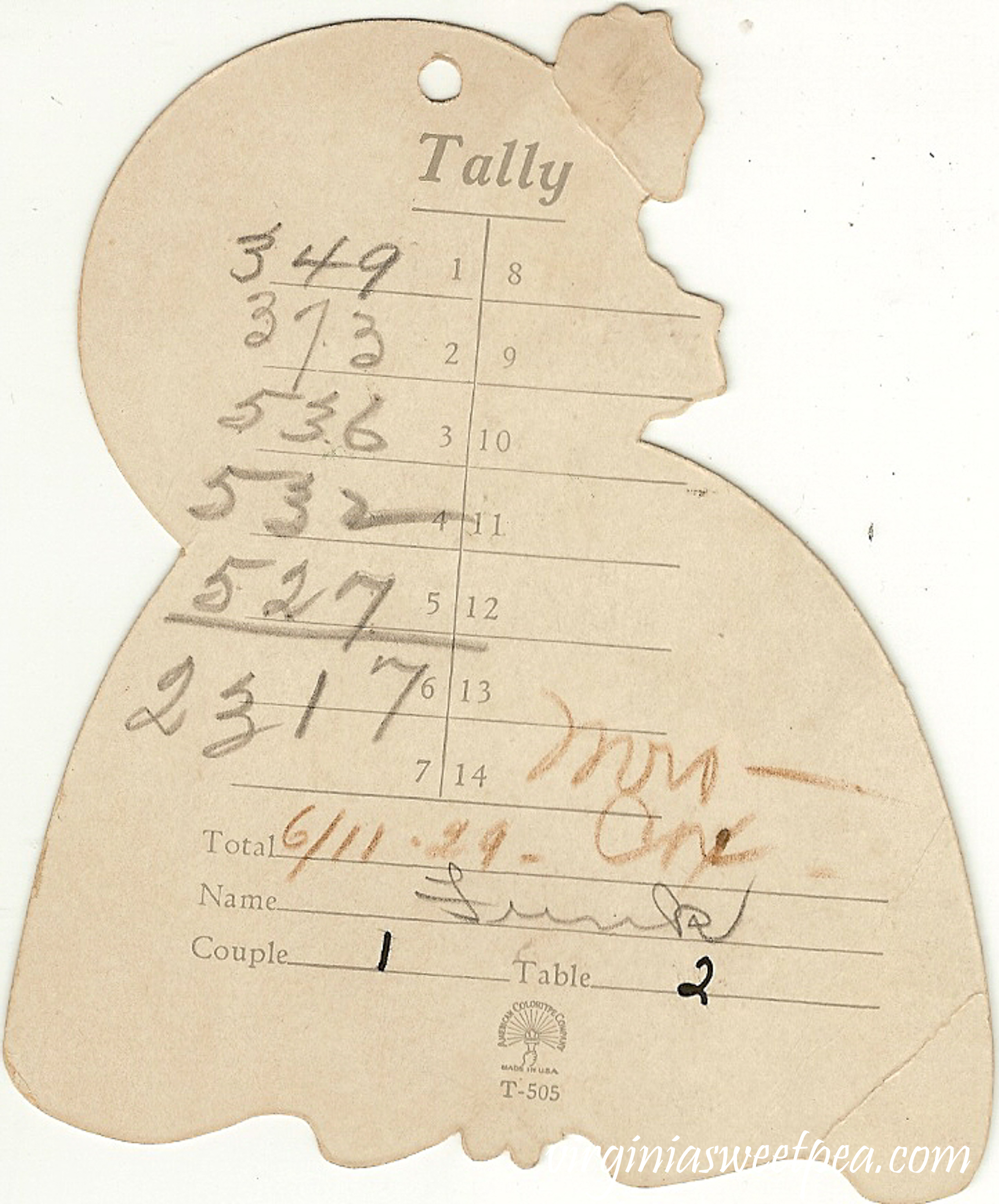 Aunt Willye and her husband George must have really enjoyed bridge.  They lived next door to my Aunt Fannie and Uncle Dodie in Vinton, Virginia.  Aunt Fannie and Uncle Dodie raised my grandmother and served as grandparents to my dad and Aunt Nancy.  If my Aunt Nancy reads this post, I hope she’ll chime in and let me know if Aunt Fannie and Uncle Dodie also played bridge.