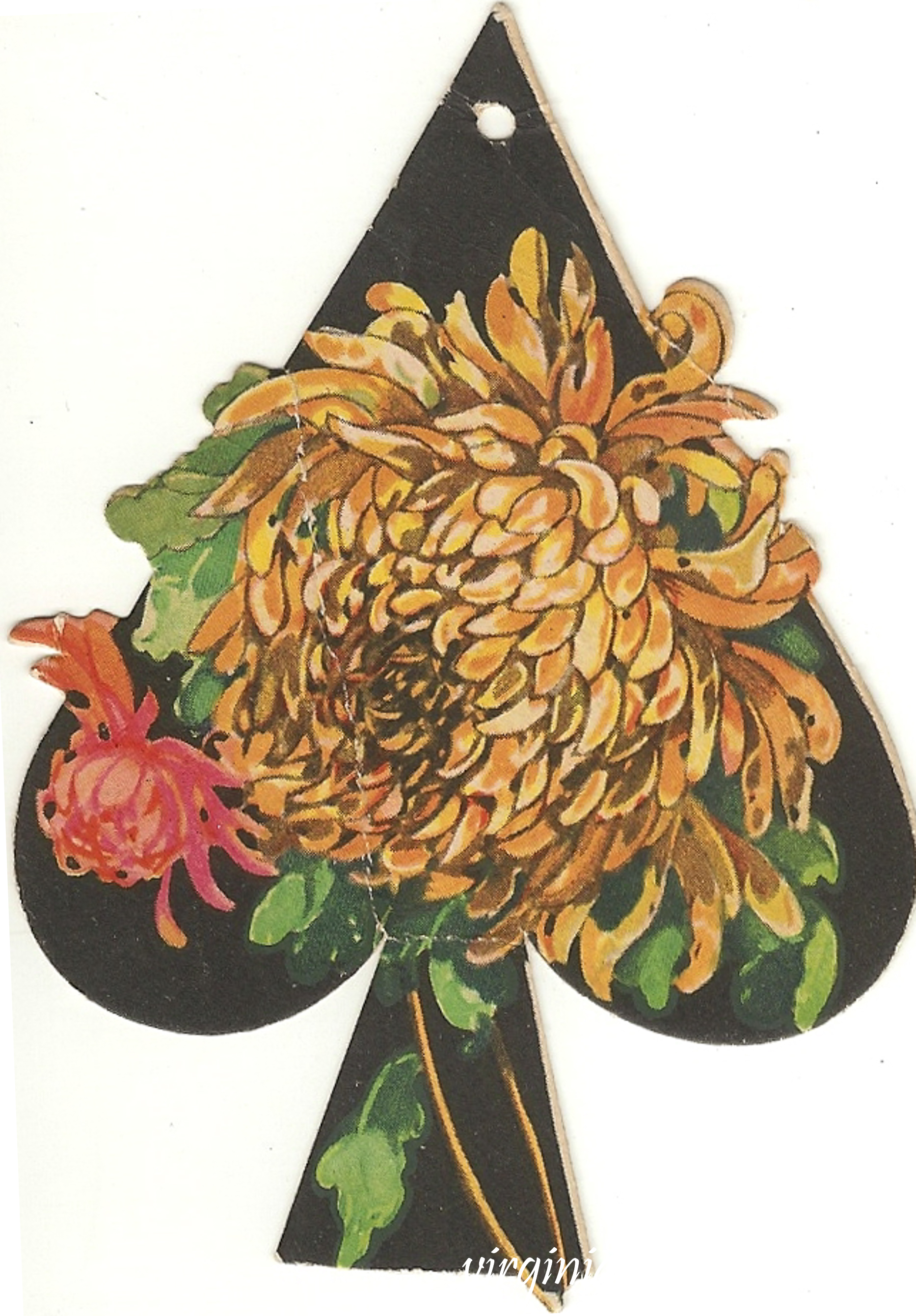 I’ll bet that this floral bridge tally card shaped like a spade was part of a set that also included a heart, diamond and a club.