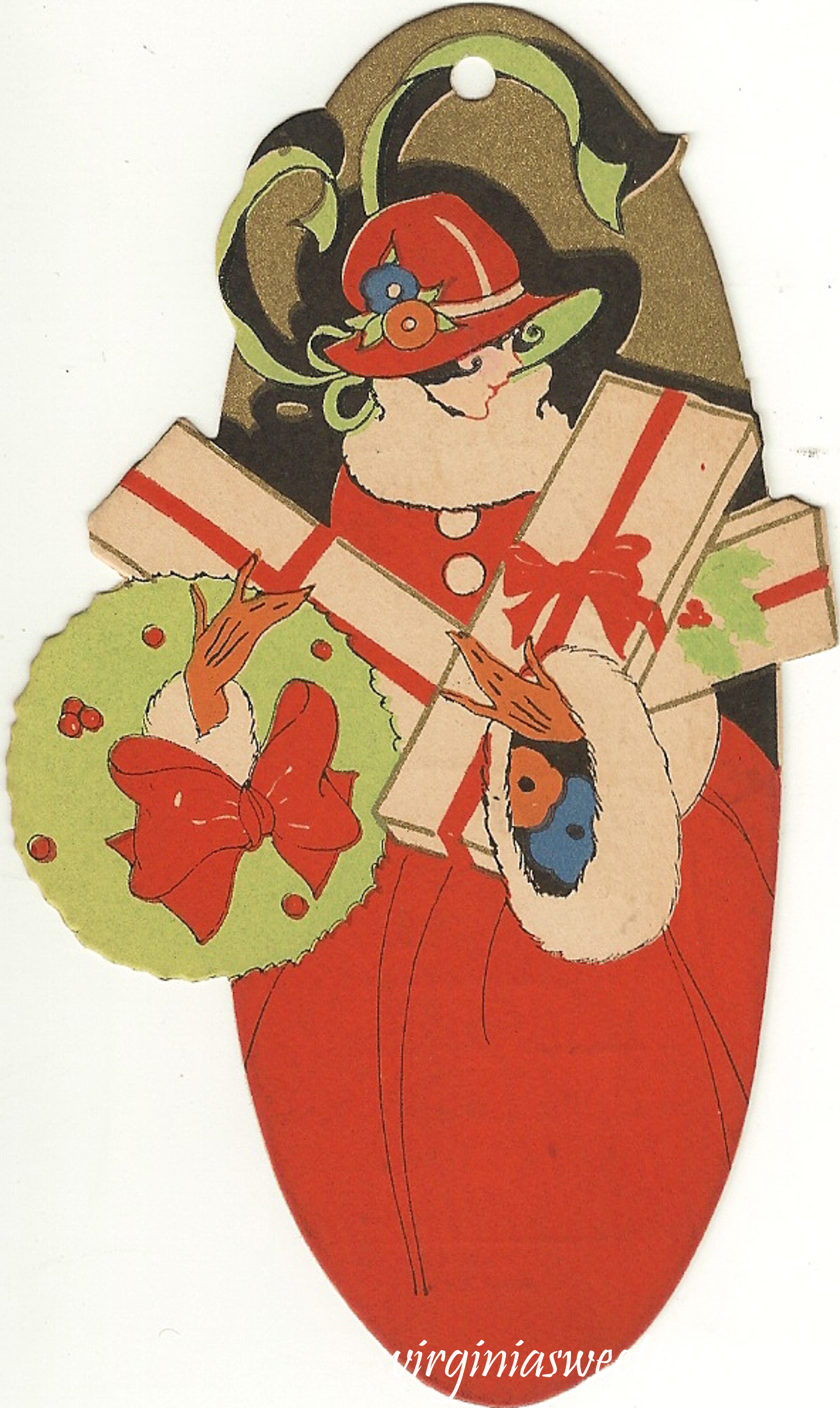 Isn’t this a pretty bridge tally?  Who wouldn’t want to go to a party at Christmas decked out in a red coat with white fur trim?