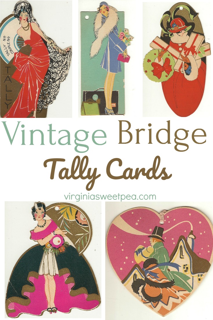 Vintage Bridge Tally Cards - See a collection of bridge tally cards used post WWI through the 1930's that feature Art Deco designs including beautiful ladies and florals. #vintage #artdeco #bridge #bridgetallycard #vintagebridgetally