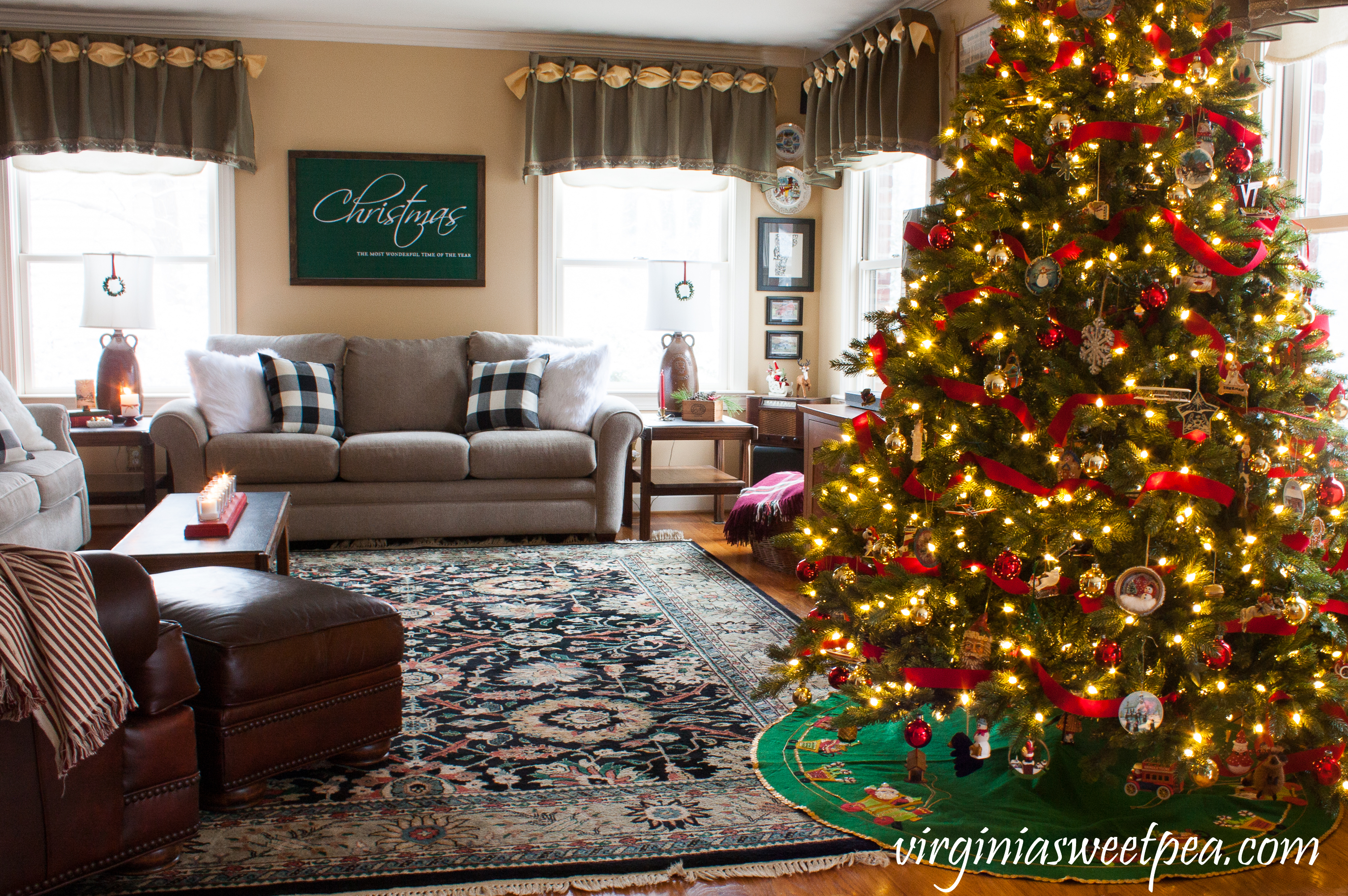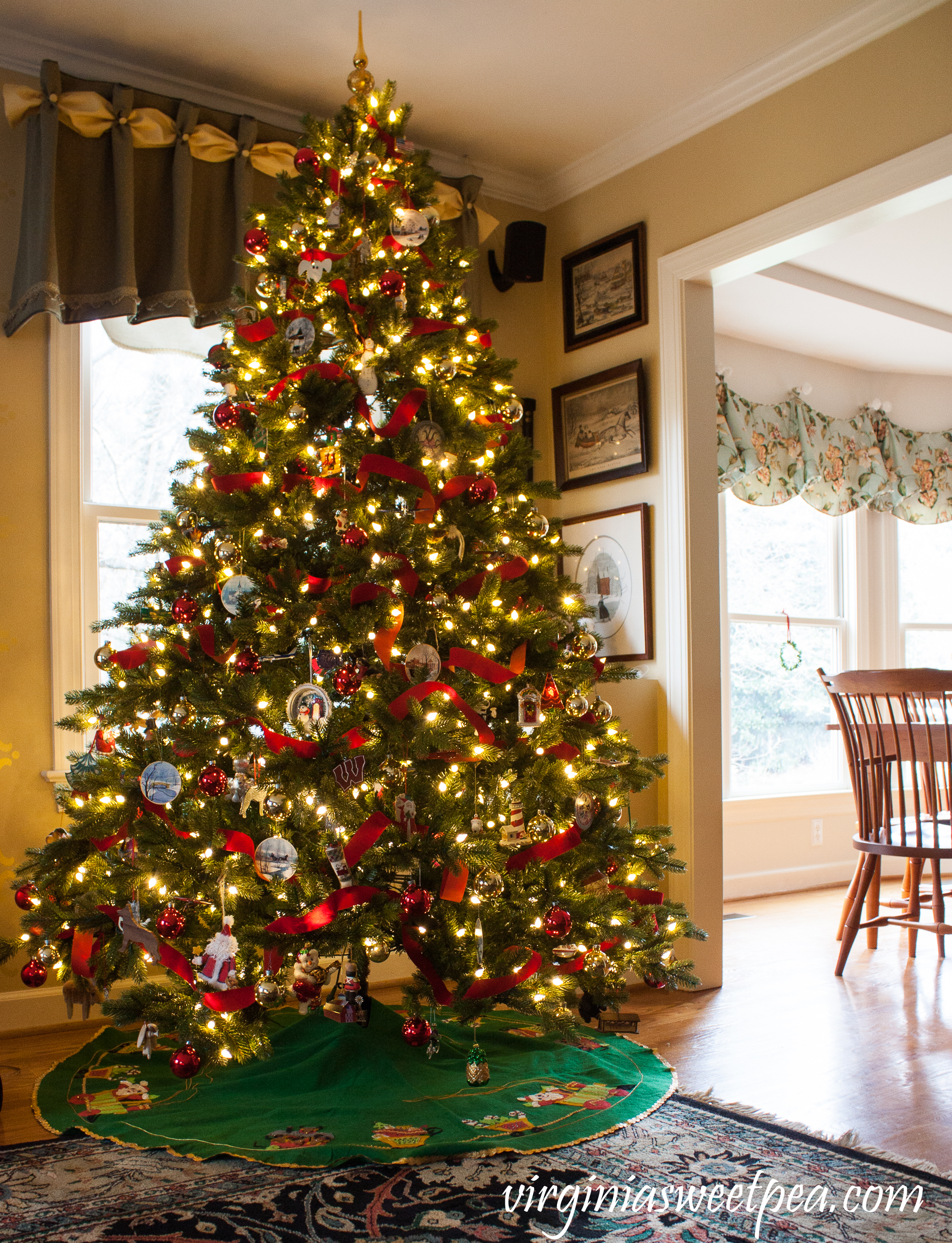 Our Christmas tree is filled with ornaments that we’ve collected over our 24 year marriage. My grandmother made our Christmas tree in the 1970’s for our family and my mother passed it along to me. You can see pictures of some of our special Christmas ornaments and also get a closer look at Granny’s tree skirt here.