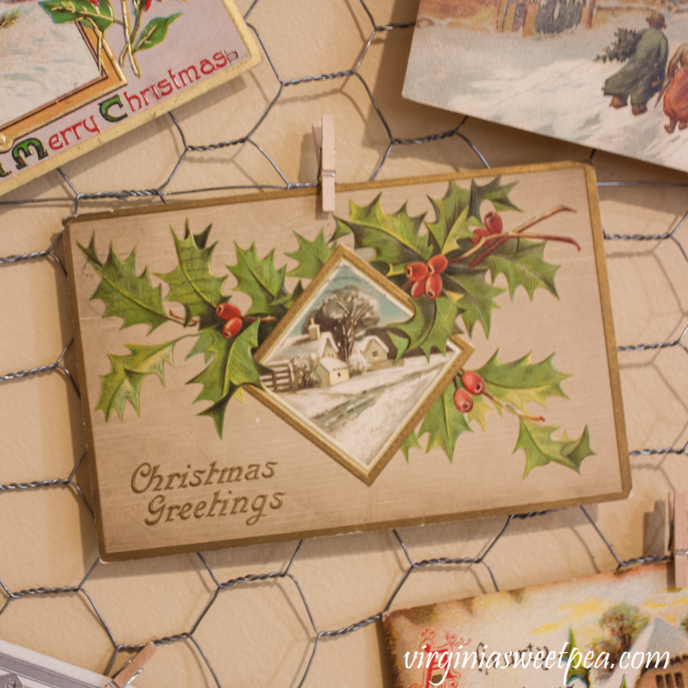 I love vintage postcards and enjoy using them for decor. When it’s not a holiday, I display vintage Lynchburg postcards.